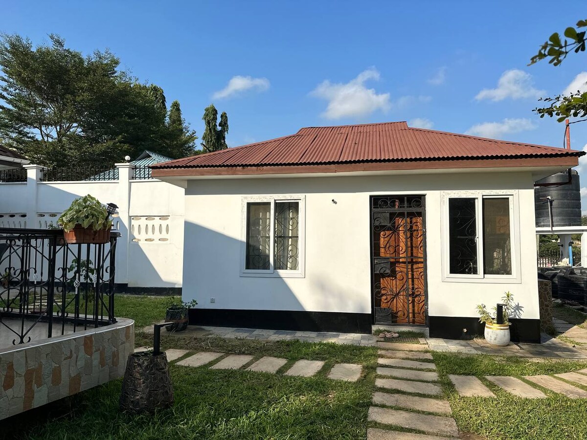 Dobře zařízený a udržovaný rekreační domek v zabezpečeném soukromém areálu v oblasti Mbezi Beach, jen 1,2 km od Bagamoyo Road. Dům s 1 ložnicí (1 manželská postel + 1 rozkládací pohovka), 1 vnitřní koupelna a vyhrazená venkovní koupelna pro návštěvy. 50palcová televize se Smart boxem, pračka, teplá sprcha, bezplatné Wi-Fi, klimatizace, plně vybavená a funkční kuchyně. Ideální pro pár a maximálně jedno dítě. Parkování, plně zabezpečené kamerovým systémem 24/7 a bezpečnostníkem na místě. Nouzový generátor energie