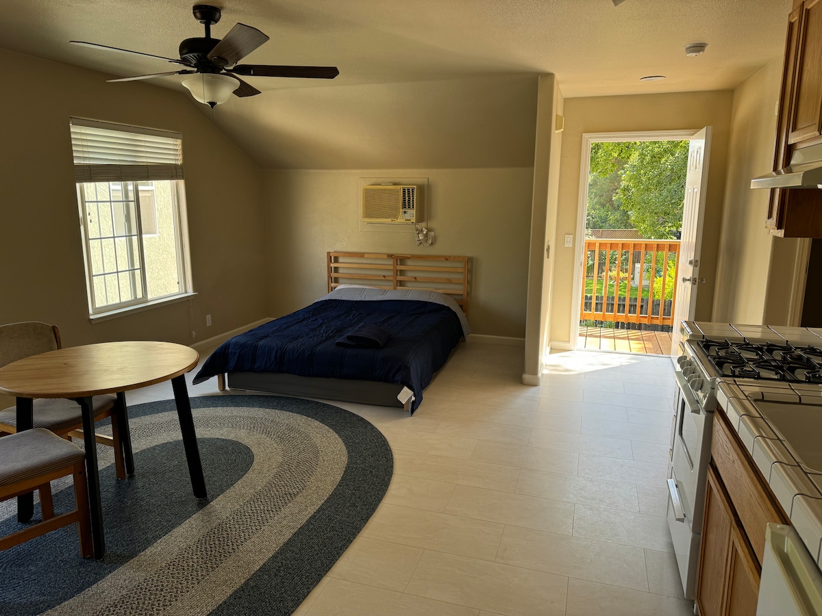 Naše plně zařízené studio o velikosti přibližně 500 čtverečních stop je jen kousek jízdy od kampusu UC Davis a v pěší vzdálenosti od dvou autobusových linek. Studio se nachází nad samostatnou garáží, oddělenou od našeho hlavního domu, a nabízí soukromí a pohodlí. Součástí ubytování je kuchyňský kout se základním vybavením, soukromá sprcha a šatní skříň. V garáži je hostům k dispozici pračka a sušička. K dispozici je také vysokorychlostní internet a kabelová televize přes Xfinity.