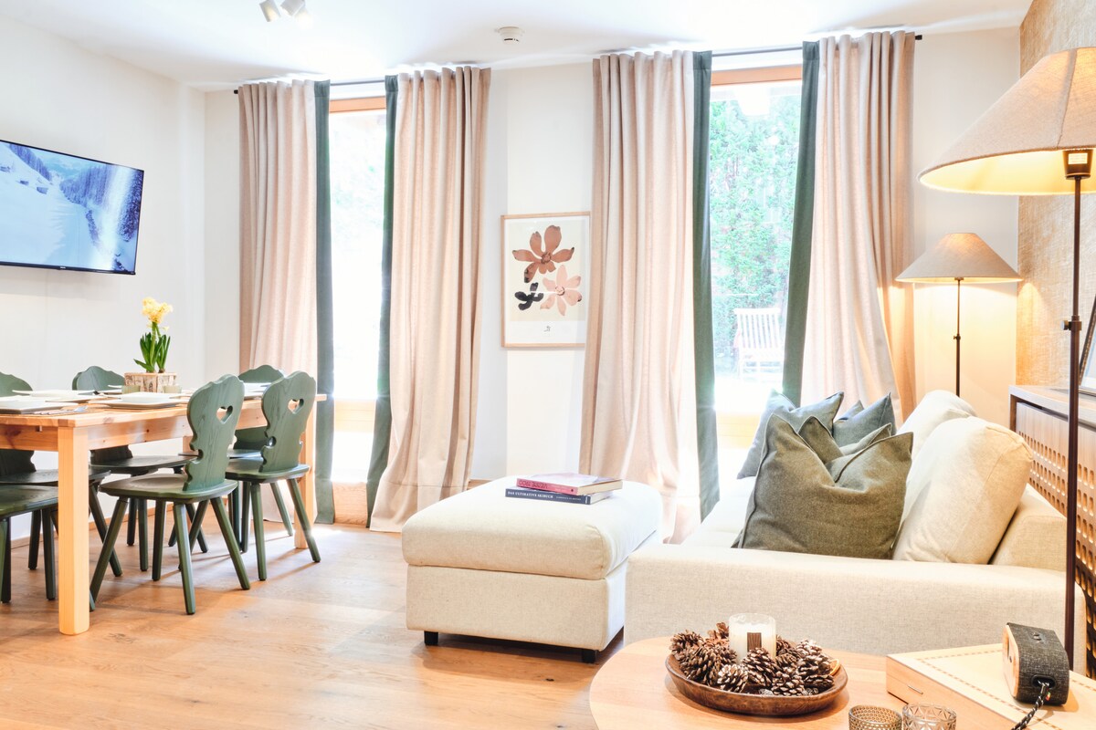 Stylový slunečný byt s balkonem, 5 minut pěšky od vleků – 4 osoby