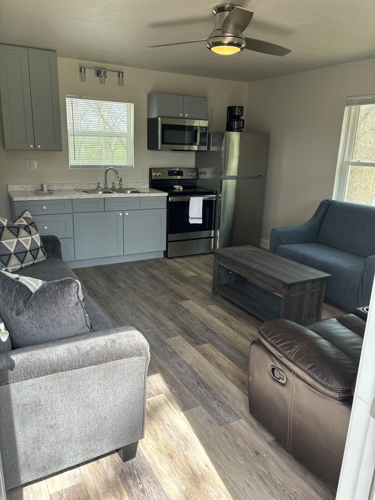 NO CLEANING FEE! New build, Paw friendly, and a Cozy cottage that is close to some of the best parts of NWA! The living room has a heated electric fireplace. The kitchen is fully stocked. There are 2 bedrooms with queen beds. Washer/dryer in unit. The home has extras for your furry friends, such as, treats, wipes, potty bags, etc. The community features 2 dog parks and a small walking path. Close by to many museums, great restaurants, walking and mountain bike trails, and lots of entertainment.