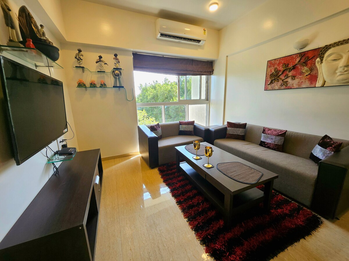Wifi - Dobře zařízený, prostorný 600 m² 1 BHK byt ve 20. patře kolem golfového hřiště. Tento byt je orientován na stadion Grand MCA a Západní Ghats – výhled z každého pokoje. Dobře vybavený byt má veškeré vybavení včetně dobře vybavené kuchyně se základními potřebami, jako je čaj/káva, koření. 9 jamkové golfové hřiště par 27 v rámci nemovitosti je přístupné hostům na základě platby za hraní. Ti, kteří golf nehrají, si mohou vychutnat procházku po hřišti a nábřeží.