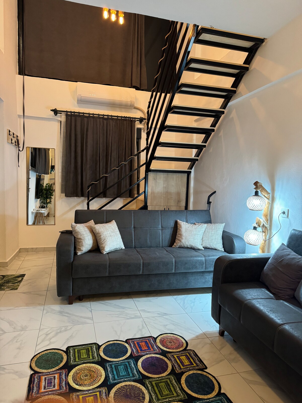 Şehir merkezinde, butik, ferah bir çatı katı. Kendine ait mutfağı ve terası ile rahat bir konaklama imkanı.