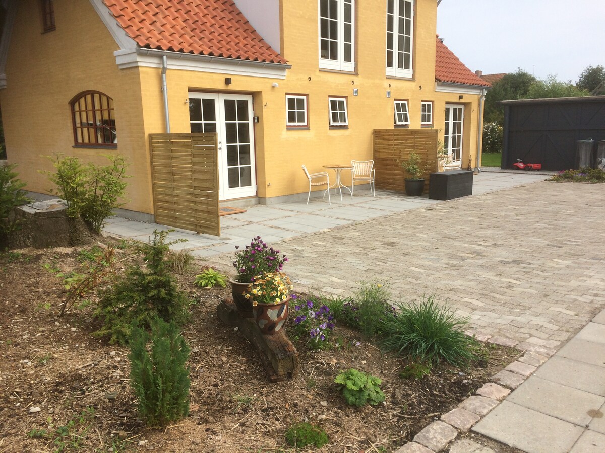 Nové a krásné Bed & Bath v klidném venkovském prostředí a s velmi krásným výhledem. Vítejte v Bjerager Bed & Bath, což je nově založená společnost s nově zařízeným 2pokojovým apartmánem, který se nachází v soukromí jednoho z nově postavených černých dřevěných domů. Vlastní soukromý vchod a přístup na velkou krásnou dřevěnou terasu s výhledem na pole a možností sledovat průběh ročních období zblízka. Parkování přímo u dveří před domem a možnost uzamčení pomocí schránky na klíče.