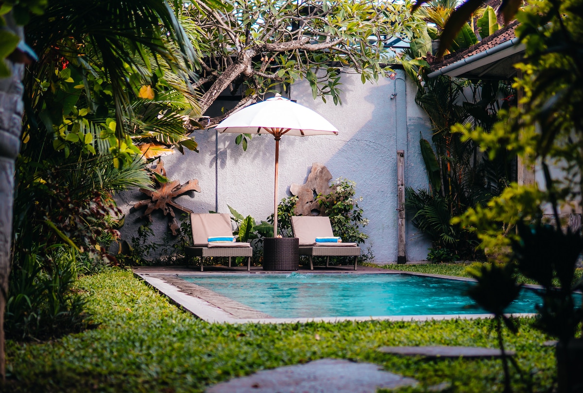 Plavání v bazénu s vodou v odstínu královské modré v nádherné vile