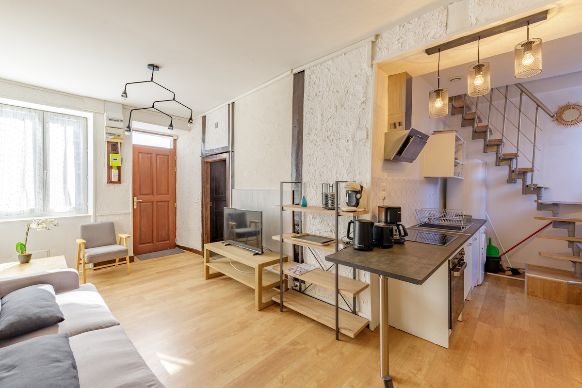 Užijte si svůj pobyt v srdci města v 38 m² velkém propojeném domě, který je velmi dobře vybavený a nabízí snadné parkování. V přízemí si užijte krásnou ložnici s postelí o šířce 160 cm. K dispozici je koupelna ve stylu ateliéru se sprchou a toaletními potřebami, stejně jako útulný obývací kout, který se otevírá do krásné, dobře vybavené kuchyně. Mezanin se 2 lůžky o šířce 90 cm je také přístupný po pěkném původním žebři. Ideální poloha, blízko všeho!