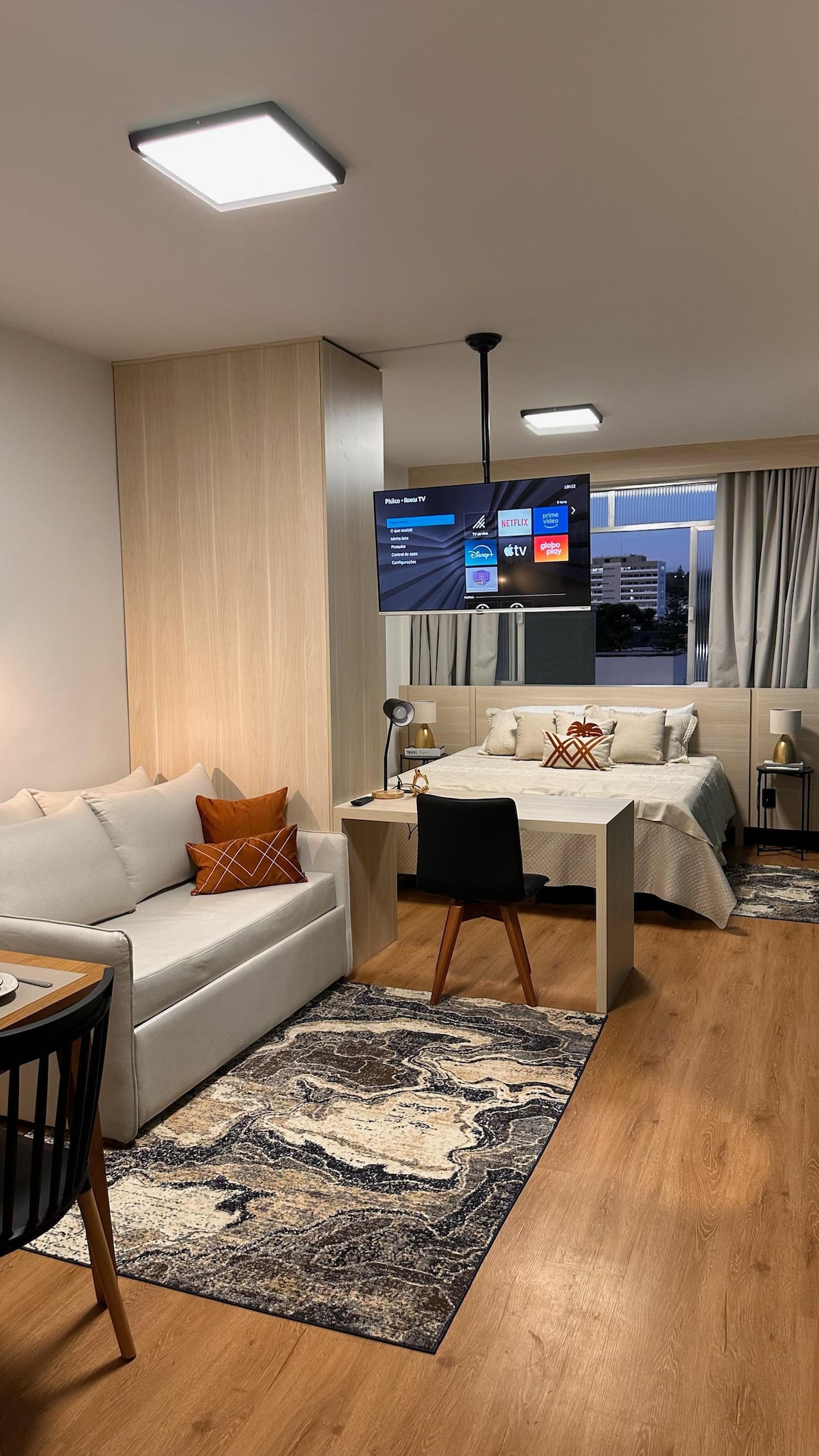 Hledáš klidné místo, kde můžeš navštívit své příbuzné nebo dokonce pracovat? Jsi na správném místě! Bazén s vířivkou a ohřívačem, spolu se suchou saunou (za příplatek, pokud překročíte limit kW/h za den). Denní limit kw = 15 kW. Při překročení 15 kW se účtuje poplatek 1,25 BRL za 1 kW. Bazén a sauna jsou soukromé. Plně vybavená kuchyň. Ubytování je blízko centra, v luxusní čtvrti města. Do budovy se dostaneš výtahem i po schodech. Ekologický gril.