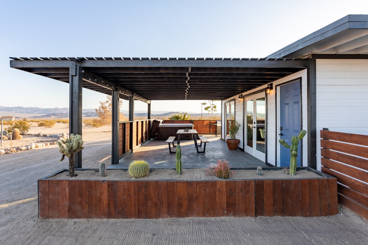 Probuď se s panoramatickým výhledem na pouštní oblohu jen 10 minut od Národního parku Joshua Tree. Tento stylový 1pokojový zámek je ideální pro páry, lidi pracující na dálku a pozorovatele hvězd. Najdete zde soukromou vířivku, útulné ohniště a bleskově rychlou wifi. Prozkoumej park, odpočiň si v houpací síti, užij si hvězdnou oblohu nebo se sejděte u ohně. Ráno si můžeš vychutnat plně vybavenou kuchyni a dát si snídani pod pergolou u jídelního stolu ze sukovitého dřeva. Velký oplocený dvůr ideální pro domácí mazlíčky.