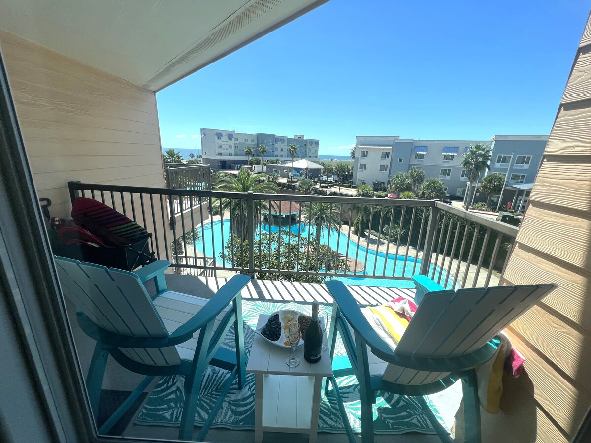 Nově zrekonstruované s útulnou atmosférou plážové chaty. Můj byt je NA PLÁŽI. Nepřekračujte rušnou dálnici s rodinou. Místo pro 6 osob. Nastavitelná manželská postel a rozkládací pohovka s 2 patrovými postelemi. Nová kuchyně, 2 televize s plochou obrazovkou. Bezplatné WiFi a NetFlix. Komplex má velký vyhřívaný tropický bazén se 3 vířivkami. Soukromý přístup k bazénu a pláži. Nemovitost je uzavřená a hlídaná. Trezor pro uložení cenností je zdarma. 10 minut od Moody Gardens nebo Pleasure Pier. Rampy pro handicapované