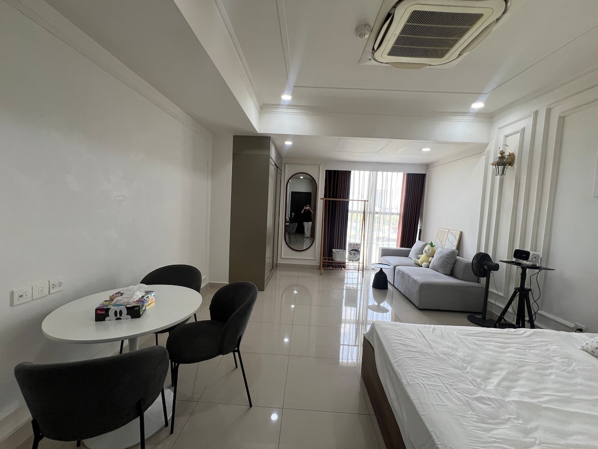 Studio sạch sẽ, giá rẻ. Nơi ở độc đáo này mang một phong cách rất riêng. Căn hộ cách trung tâm Thành phố khoảng 10’. Khách tự nhận phòng với hộp khoá an toàn. Kết nối wifi mạnh, SmartTV, trong phòng có đầy đủ tiện nghi: bàn ủi, máy sấy tóc, kem đánh răng, dầu gội,sữa tắm, máy giặt, lò vi sóng, bếp điện, nồi cơm điện. Thời điểm hiện nay có công trình làm đường thi công vào ban đêm gần toà nhà, kính mong quý khách thông cảm.