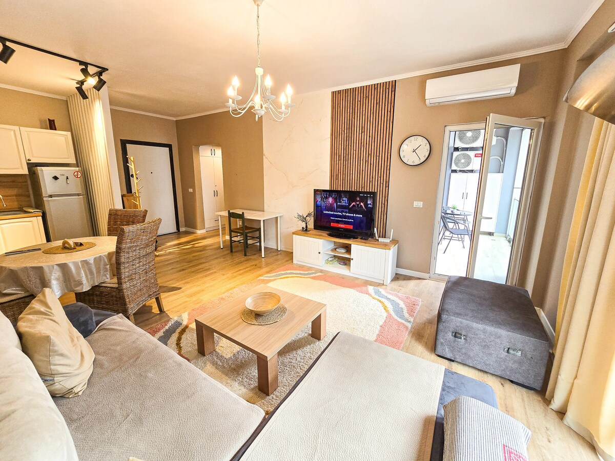 „Uteč do našeho nádherného dvoupokojového bytu v centru Tirany, kde každý kout vyzařuje teplo a šarm. Probuď se s nádherným výhledem na horu Dajti, vychutnej si snídani v moderní kuchyni a pak si odpočiň na balkóně. Díky útulným ložnicím a centrální poloze v blízkosti kaváren a atrakcí nabízí náš apartmán dokonalou kombinaci pohodlí a pohody pro nezapomenutelný pobyt v Tiraně.“
