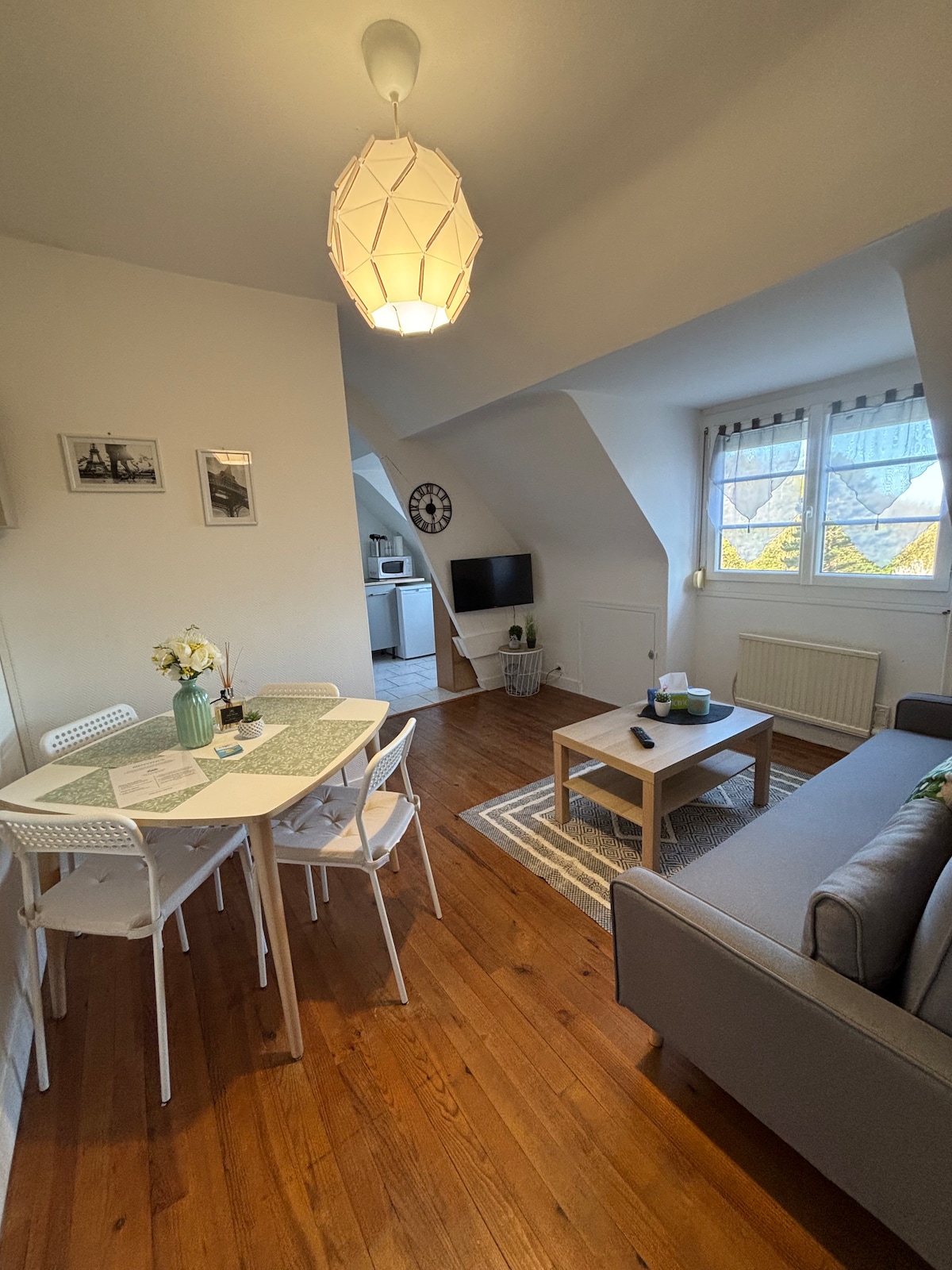 Au cœur de la ville, en centre piéton à 10 mn à pied de la gare et à 300 m de la plage, cet appartement indépendant et moderne au 1er étage (10 marches) d'une maison de ville vous accueille dans une ambiance douce. Profitez de la proximité des centres d'intérêts majeurs de la ville, du château musée, au marché hebdomadaire en passant par le casino, la Thalasso, sa piscine d'eau de mer et la plage. Un parking Indigo se trouve à 50 m du logement. Local vélo privé au rez de chaussé.