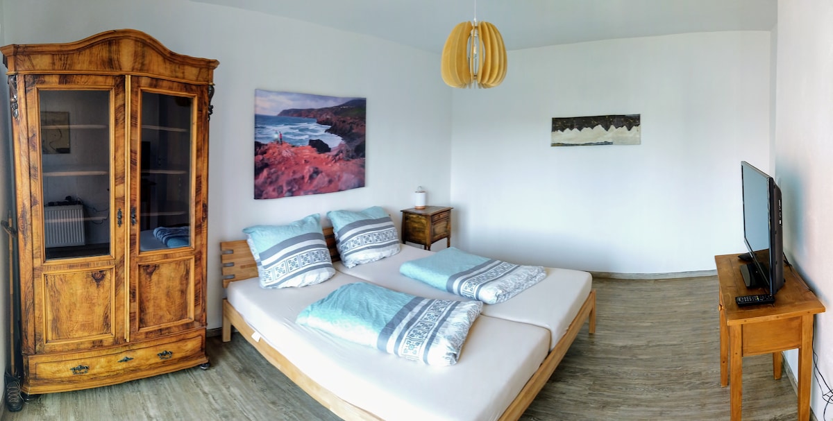 Užij si pobyt v Saarbrückenu ve stylovém Trilleru s nádherným výhledem do zeleně a na centrum Saarbrückenu. Udělej si pohodlí ve dvou slunných pokojích v podkroví dvoupatrového bytu. Ložnice je vybavena manželskou postelí 140x200 cm a šatní skříní. V obytném prostoru se nachází kuchyňský kout, jídelní/pracovní stůl, pohovka a televize s Disney+, Netflix a Prime Video. K dispozici je koupelna se sprchou pro výhradní použití