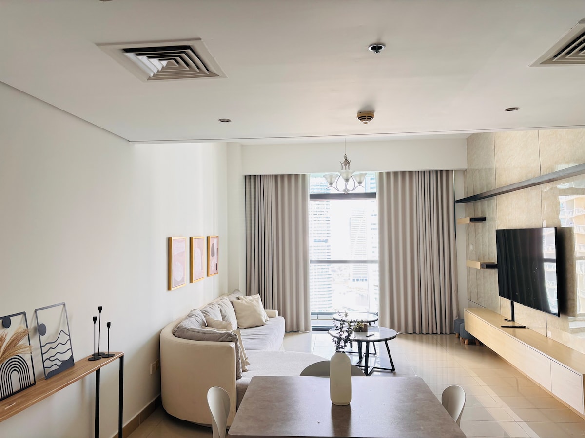 Tento fantastický zbrusu nový garsonka se nachází v srdci pláže Jumeirah a Marina Walk, hned vedle ostrova Bluewaters a světoznámého Dubajského oka. V této exkluzivní lokalitě najdete oceněné restaurace, z okna apartmánu uvidíte nejvyšší a největší vyhlídkové kolo na světě přímo před postelí! Ideální pro služební cesty, cestovatele nebo obyvatele, kteří potřebují dovolenou!