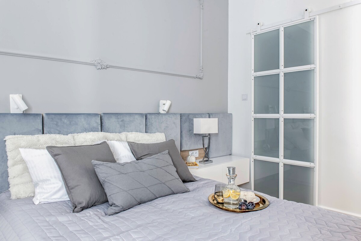 A luxurious loft-style apartment located in an over a hundred-year-old tenement house. Due to the extremely high ceilings and windows you can feel space and light. While designing the interior of our cosy accommodation, we tried to combine comfort with luxury. The bedroom has been separated from the living area, so up to 4 people can comfortably spend time here. The central location of this appartment is an excellent starting point for any excursions.