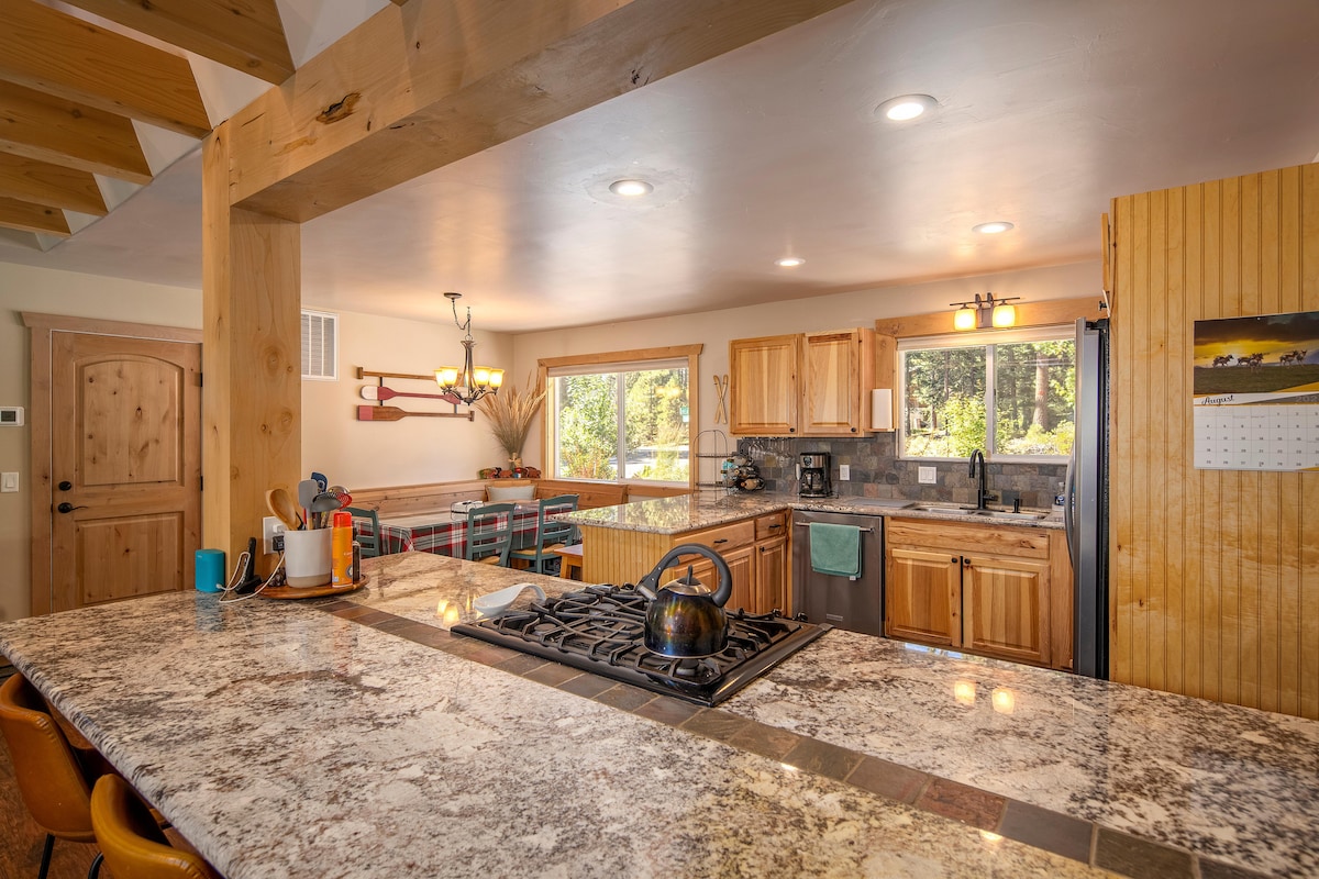 Naše klasická chata ve tvaru A, která se nachází mezi jezerem a malebnými turistickými stezkami, je ideálním celoročním alpským útočištěm. Jsme jen pár minut od restaurací, obchodů a nočního života v centru Tahoe City. Užij si prvotřídní lyžování nebo pobřeží nedalekého jezera Tahoe. Po dobrodružství si odpočiň v naší zbrusu nové vířivce nebo se uveleb u krbové vaty. S Bluetooth audio systémem a věcmi vhodnými pro děti se snažíme zajistit příjemný pobyt pro všechny. A navíc jsou štěňata vítána!