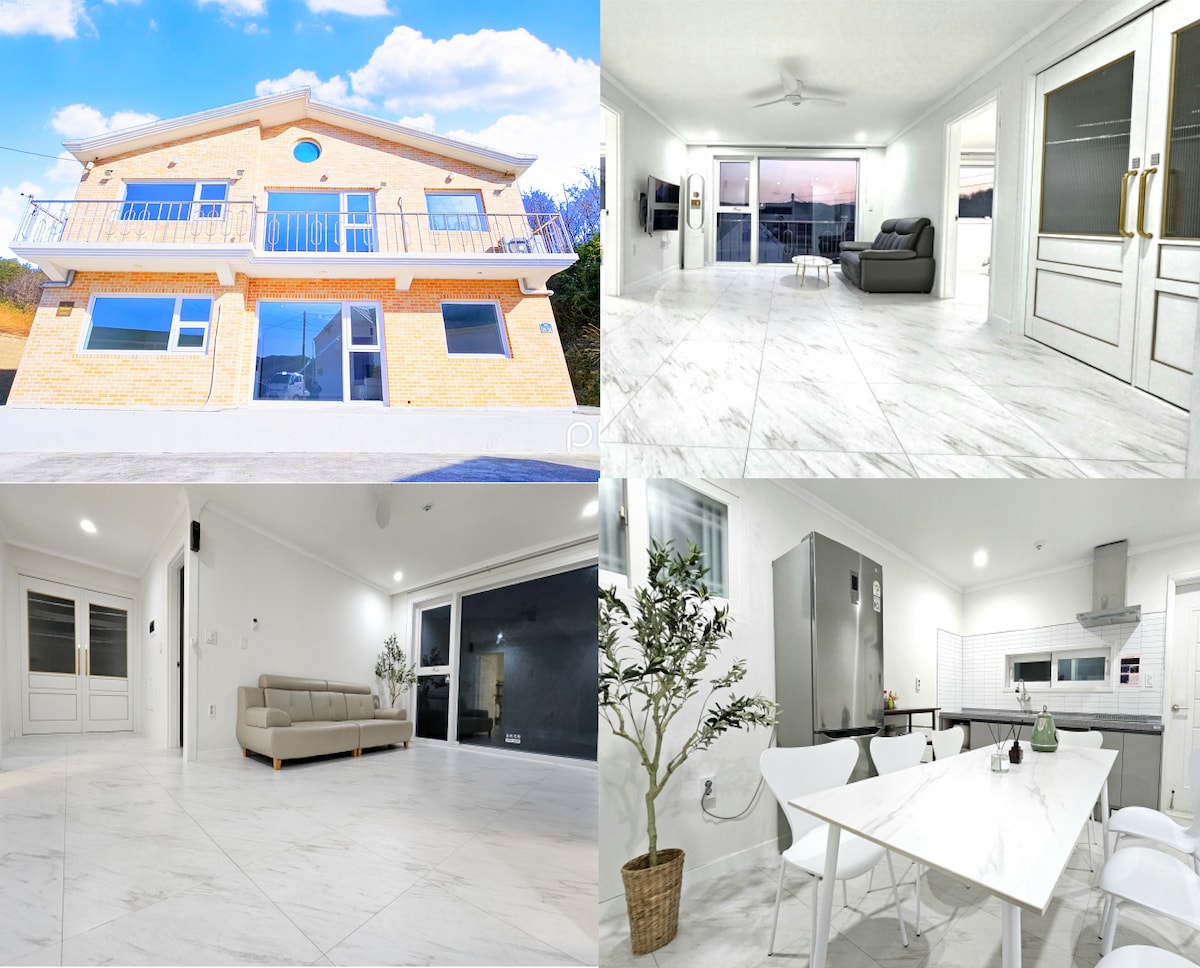 „Soukromý penzion ve druhém patře s moderním a uklizeným stylem 100 pyeongů“ 1. patro - obývací pokoj, seminární místnost, kuchyň, zahrada, 2 toalety (Netflix, Disney + k dispozici, bez hesla k wifi) (Základní nádobí je připraveno v kuchyni, ale není zde žádné koření ani čistička vody) 2. patro - 4 pokoje (Dvoulůžko v každém pokoji, soukromá toaleta, lednice, klimatizace, vana Hinoki) (Šampón, tělové mýdlo, mýdlo na ruce, fén, 4 ručníky jsou k dispozici) (Prosíme, nechoď ven z jednotlivé terasy ve druhém patře. Kouření je absolutně zakázáno) * * Na základě 8 osob a může ubytovat až 15 osob Pokud počet osob překročí standard, bude ti naúčtován dodatečný poplatek ve výši 20 000 KRW na osobu. * * Dřevěné uhlí + 2 plotýnky + rukavice při používání venkovního grilu: 40 000 KRW (Není k dispozici v případě deště/použití rolovací pánve ve vnitřní kuchyni) * * DPH není zahrnuta ve vystavení hotovostního dokladu a daňové faktury * * Domácí mazlíčci nejsou povoleni * * 25 000 KRW na hosta sleva na jachtu (cena v hotovosti) Jízda může být až 11 osob Poptávka: 45248606