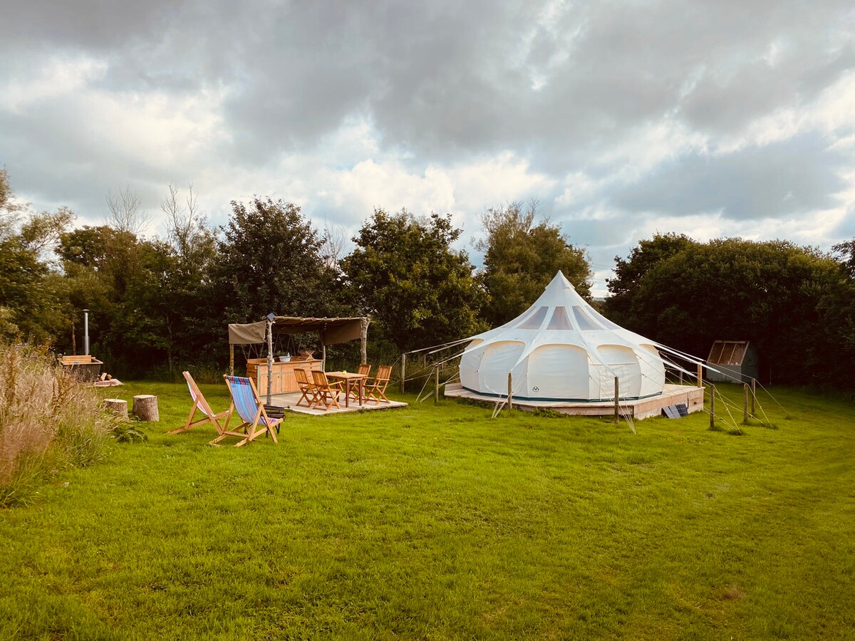 Soukromý glampingový prostor jen pro vás, ukrytý v přírodě. S kuchyní a sprchou, velkým stanem, venkovní jídelní koutem, grilem a ohništěm. Tento jedinečný venkovní prostor obklopený majestátními stromy s výhledem na venkovskou louku je tím nejlepším z obou světů, protože je docela odlehlý, ale na okraji malého somersetského města, se snadným přístupem k místním obchodům a restauracím. Oddechni si a relaxuj ve vířivce, zatímco se díváš na louku s divokými květinami nebo hvězdnou noční oblohu.