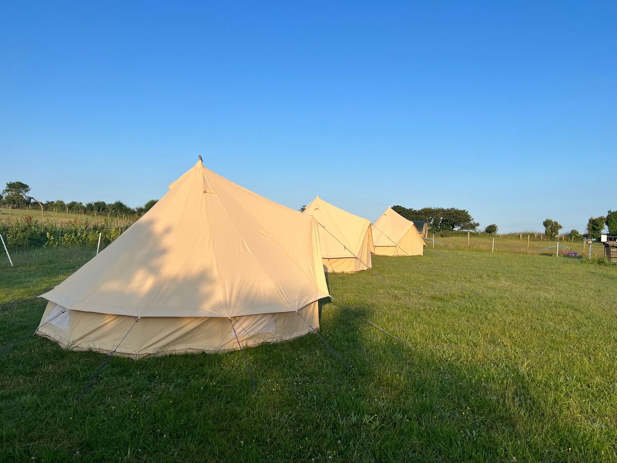 Glamping v celé své kráse, s vířivkou! Jsme fungující farma, tento pobyt je v srdci našeho rodinného podnikání Tvůj dokonalý venkovský únik pro odpočinek, opětovné spojení a trochu rustikálního šarmu. Náš glampingový areál je zasazený na svahu s nádherným výhledem a nabízí dva útulné zvonové stany a prostornou stodolu pro veškeré sdílené pohodlí. Pozorování hvězd u ohniště, hraní kulečníku ve stodole nebo kochání se výhledy. Káva u kamínku. Odpoj se, uvolni se a probuď se v přírodě v Allenfordu