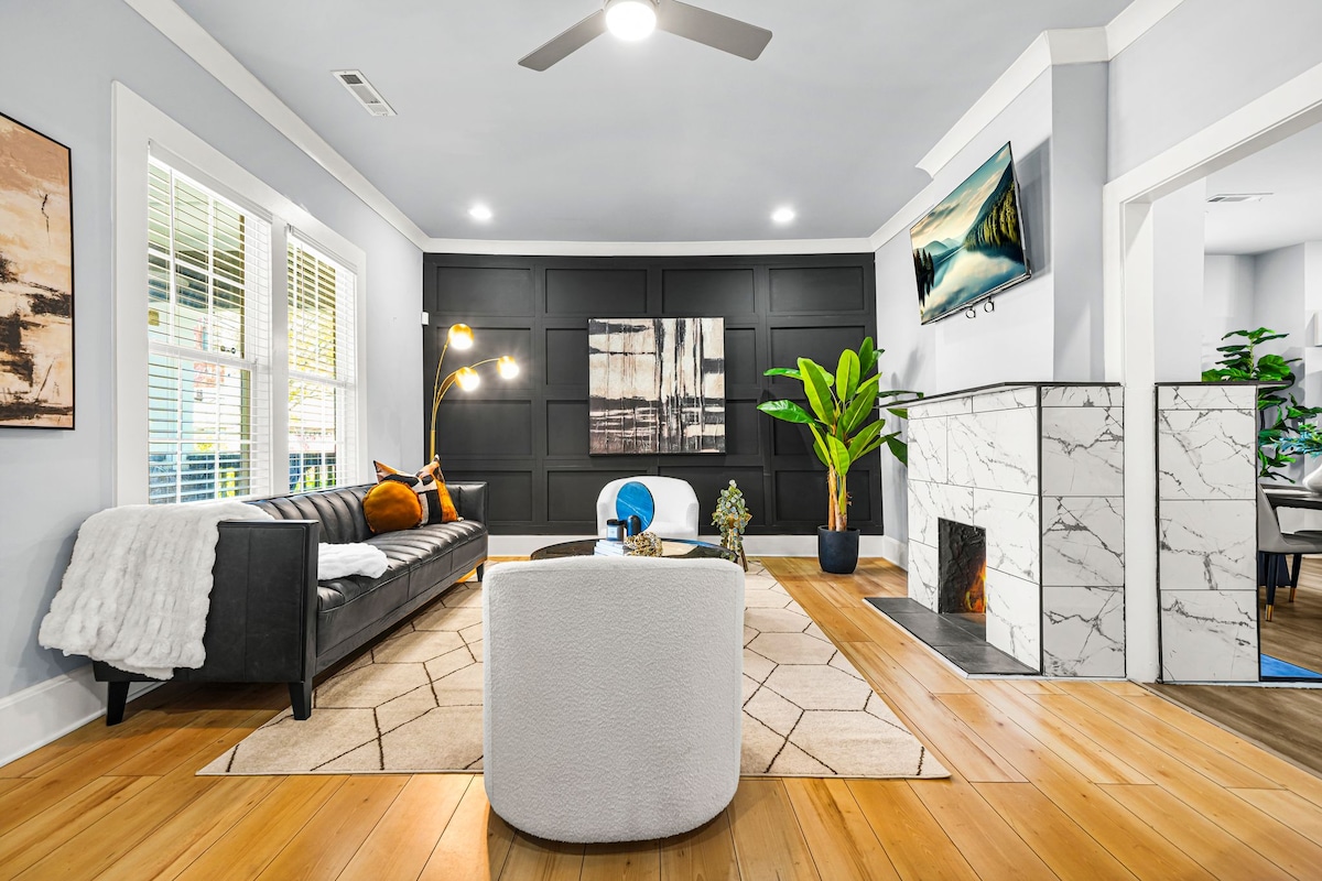 Vítejte v KylieCarter Haus - nové výstavbě z roku 2023 v historické čtvrti West Side Atlanta. Náš domov nabízí zábavnou atmosféru v Atlantě Skyline Wall pro fotky, obrovský otevřený půdorys se stropem o délce 9 stop, kuchyň postavenou na míru a japonskou vířivku. Každá ložnice je krásně navržena s jedinečnou zvýrazňující stěnou, závěsnými světly, nástěnnými světly, 50 televizory a dalšími. Tvůj pobyt bude při pobytu v KylieCarter Haus při návštěvě Atlanty nezapomenutelný.