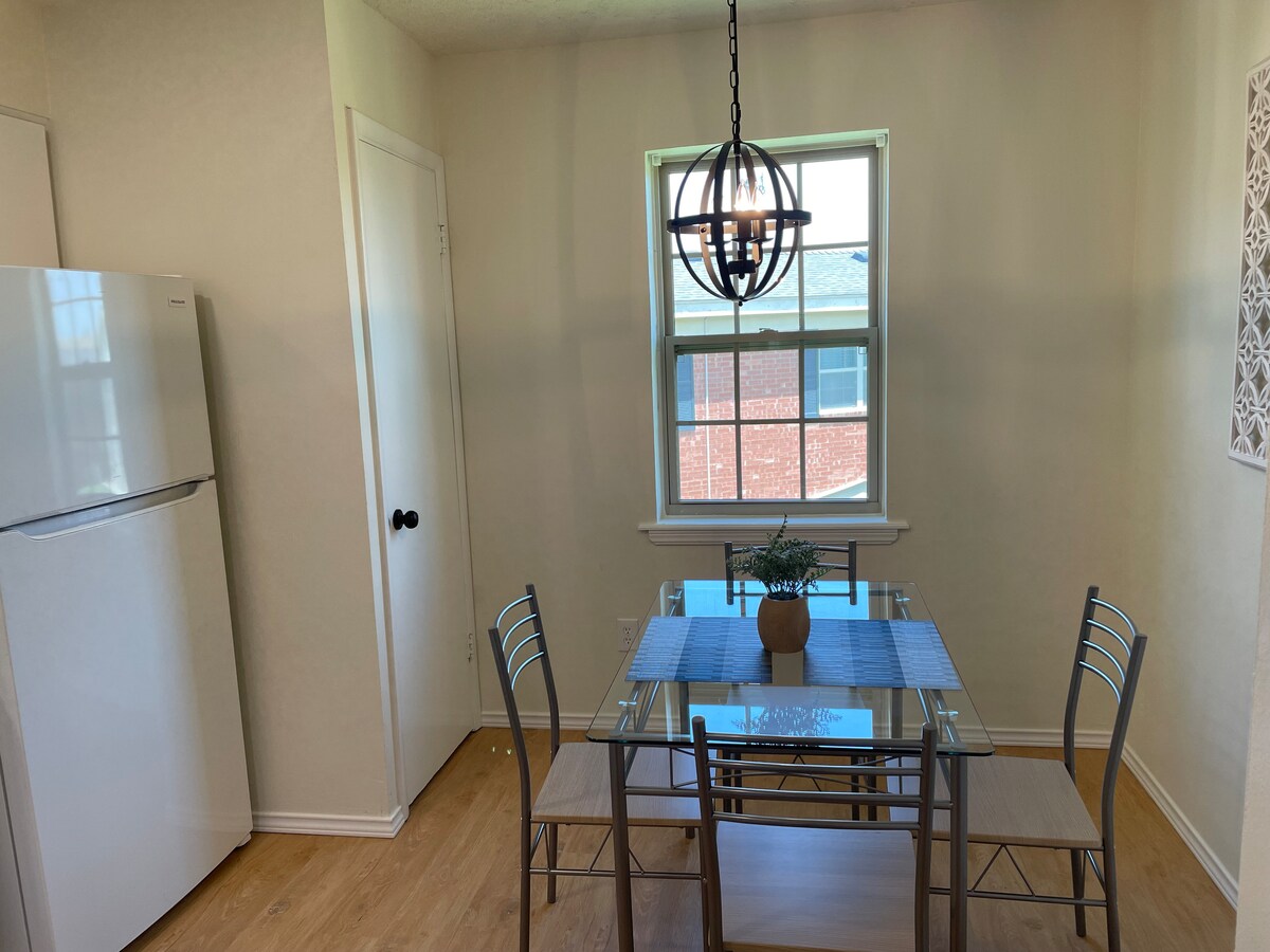 Tento nedávno zrekonstruovaný byt se dvěma ložnicemi a jednou koupelnou se nachází v Oklahoma City poblíž nemocnice Integris, NW Exp. Jedna manželská postel King a jedna velká manželská postel. Kuchyň je plně vybavena velkými spotřebiči, pračkou a sušičkou. V obývacím pokoji je 55palcová chytrá televize a Wi-Fi. Balkon s výhledem na nádvoří. Jedno vyhrazené kryté parkovací místo. Zákaz kouření. Tento byt se nachází ve druhém patře. Musíš se umět pohybovat po jednom schodišti.