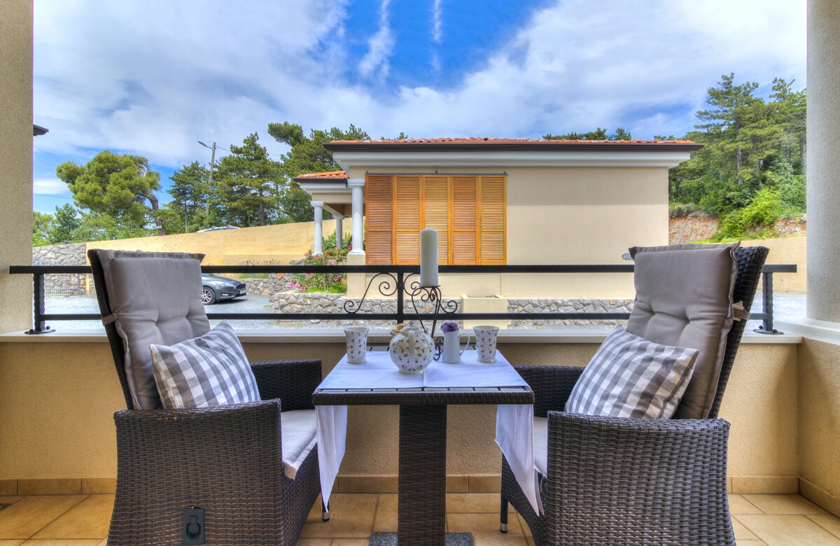 The apartment is located between Novi Vinodolski and Selce, its in a very quiet area so you can relax and injoy your vacation. It's a new build apartment. The beach in located in Novi Vinodolski or Selce and its about 5 km away. If you want sandy beach, there is Crikvenica and its about 8 km away from the apartment. We have a grill area with a stone table and wooden benches were you can eat or just relax and have a cold drink. The parking is very close to the apartment. Contact us for anything.