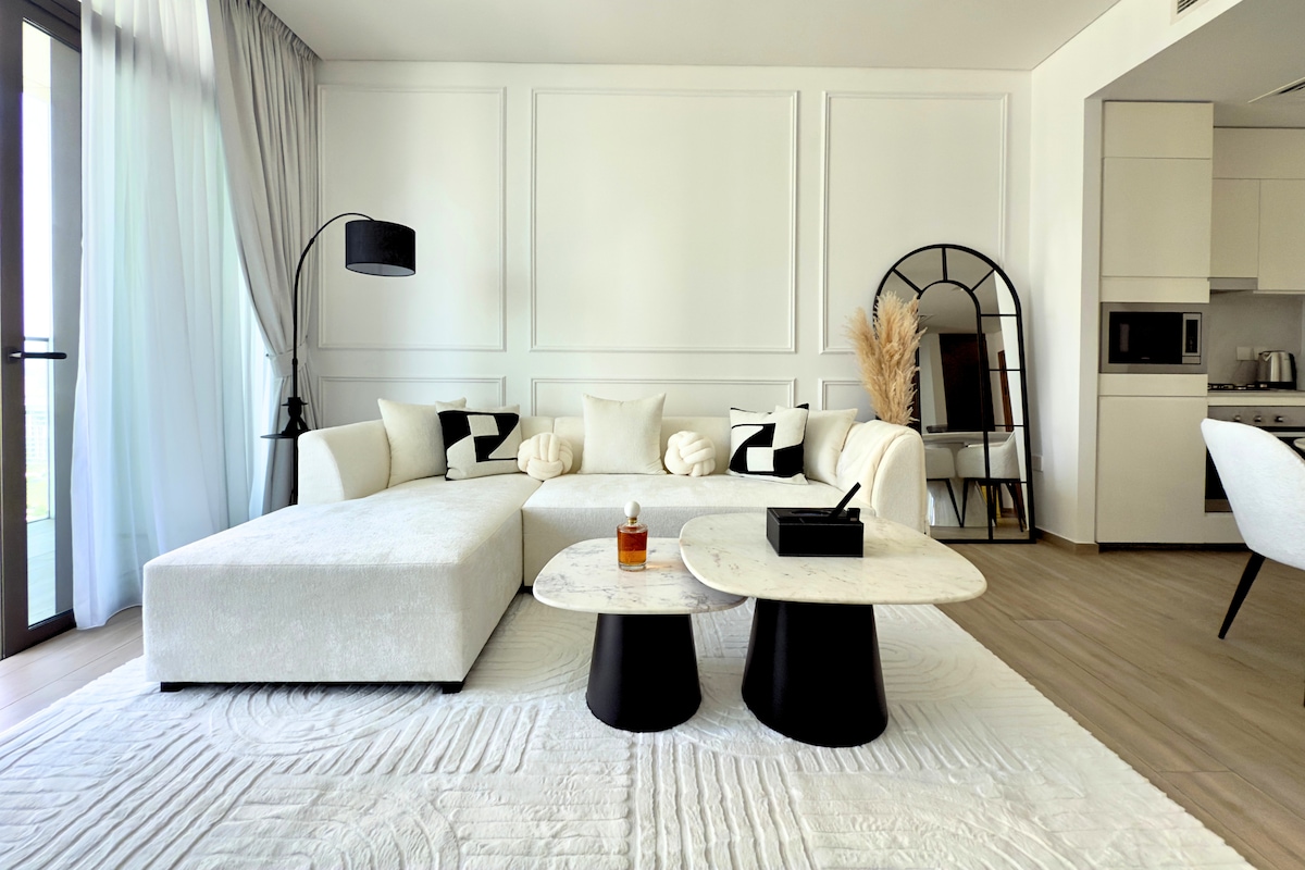 Ubytuj se v jedinečně stylizovaném apartmánu s 1 ložnicí v luxusním Palace Residences na nábřeží v přístavu Dubai Creek. Tento 66 metrů čtverečních velký domov je plně vybavený vším, co potřebuješ, a nabízí světlý obývací prostor a soukromý balkon s nádherným výhledem na panorama. Hosté si užívají prvotřídní vybavení, včetně bazénu, moderní posilovny a nonstop ostrahy. Dokonale propojené, jen 15 minut od centra Dubaje a letiště, je ideální základnou pro váš pobyt v Dubaji.