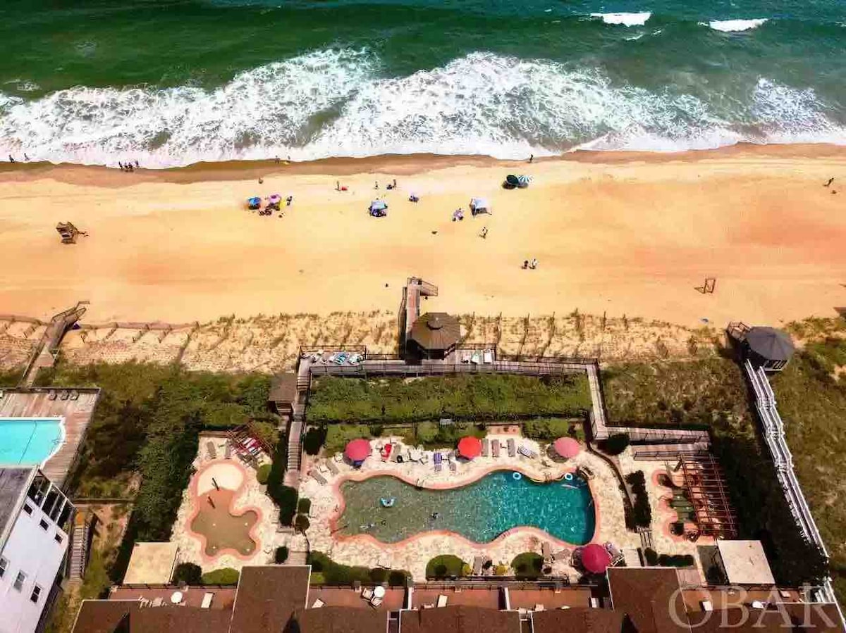 Zářící a zrekonstruovaný dům na pláži se 4 ložnicemi a 3 koupelnami je 2500 stop čtverečních velký dům na stromě, který ožívá díky 6 terasám, kuchyni šéfkuchaře s otevřeným půdorysem a 20' stropy, soukromému bazénu (teplo opt) s plynovým grilem, krytou verandě a horní vířivce pro pozorování hvězd. Koupelna připomínající lázně s vanou a krbem. Nádherné pláže a malebné molo se západem slunce jsou vzdáleny jen pár minut pěšky nebo na kole. Pohodlně se nachází jen pár minut od obchodů, restaurací a atrakcí, zatímco si blaženě zachovává samotu Corolly.