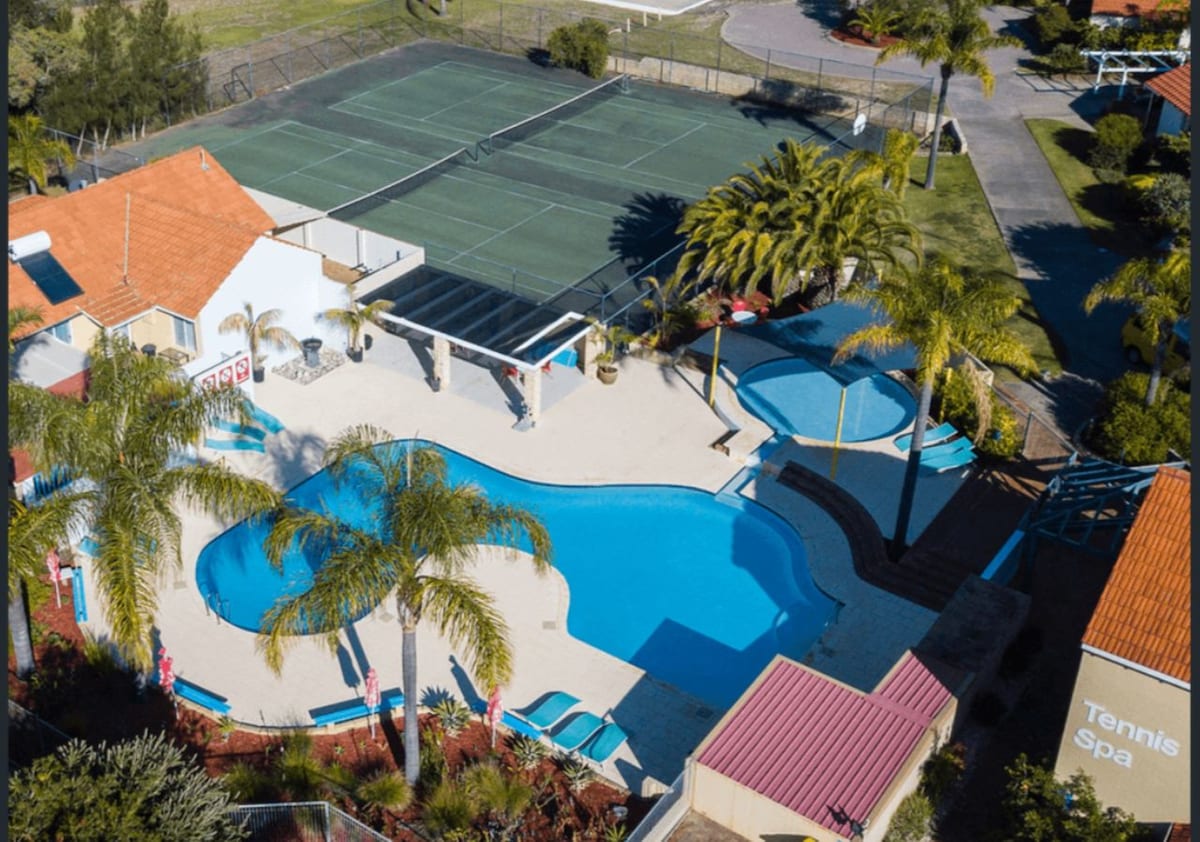 Stylový a relaxační pobyt pro dva. Tato prostorná vila s jednou ložnicí nabízí výjimečné vybavení ve stylu resortu, včetně tenisových kurtů a nekonečného bazénu s nádherným výhledem na oceán. Velká lázeňská vana určená k relaxaci a venkovní terasa, kde se můžeš opalovat a nechat se osvěžovat přímořským vánkem. Užij si krásy pláže při ranní nebo večerní procházce nebo se vydej do přístavu Mandurah Ocean Marina, kde se můžeš najíst u vody a nakupovat v buticích.