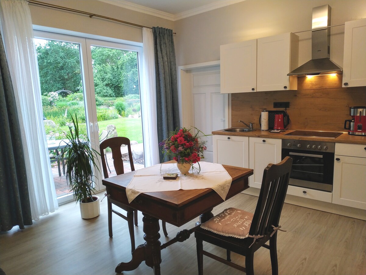 Pokud hledáte klidné místo k odpočinku uprostřed krásných polí a zeleně, toto je místo přesně pro vás. Moderní apartmán se skládá z velkého obývacího/jídelního pokoje, ložnice s manželskou postelí a velké koupelny. Za malý poplatek může být využit také zahradní domek se saunou a jízdními koly. Okouzlující město Oldenburg (15 km daleko) je skvělým místem k nakupování a je také známé svými rozmanitými kulturními událostmi a nočním životem.