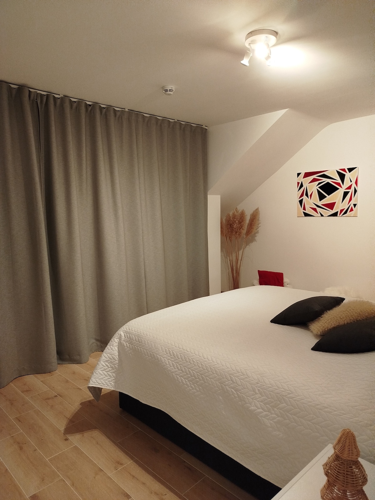 Uteč do našeho romantického apartmá a užij si jedinečný zážitek pod hvězdnou oblohou. Odpočiň si v kulaté vířivce se širokými okraji a uklidňujícími hydrotryskami nebo pod prostornou dešťovou sprchou. Zahřejte své večery s panoramatickými peletovými kamny – ideální pro vytvoření útulné a intimní atmosféry. Všechno je navrženo tak, aby vám pomohlo odpojit se od všedního dne a znovu se spojit s ostatními.