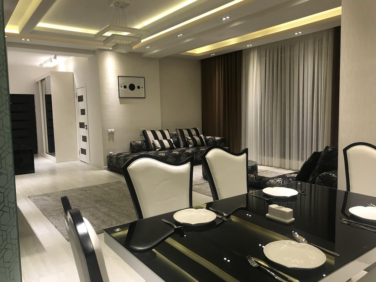 Zbrusu nový byt v centru Dušanbe. Útulná a stylová ložnice a obývací pokoj v neutrálních barvách, díky nimž bude váš pobyt pohodlný. Nádherný výhled na město. Plně funkční zbrusu nová kuchyně. Spousta obchodů a restaurací v těsné blízkosti. 5 minut pěšky na Rudaky Avenue.