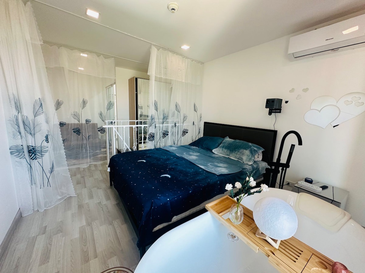 Přiveď celou rodinu do tohoto nádherného domova se spoustou prostoru a akce.Dole je Seven Eleven And Tops Daily, existuje mnoho restaurací a kaváren, 500 metrů od trhu se zeleninou, jeden kilometr na pláž Jomtien, jeden kilometr na velký velkoobchodní trh, sousedství má super velký výhled na bazén a dvě obrovské tobogány, mělký rybník, dětský bazén.K dispozici je také posilovna na dvou podlažích a nadměrná sauna.Pokoj je vybaven bubnovou pračkou, vanou a projektorem.Sousedství je ideální pro rodinnou dovolenou.Odpočiň si s celou rodinou v tomto poklidném domově.