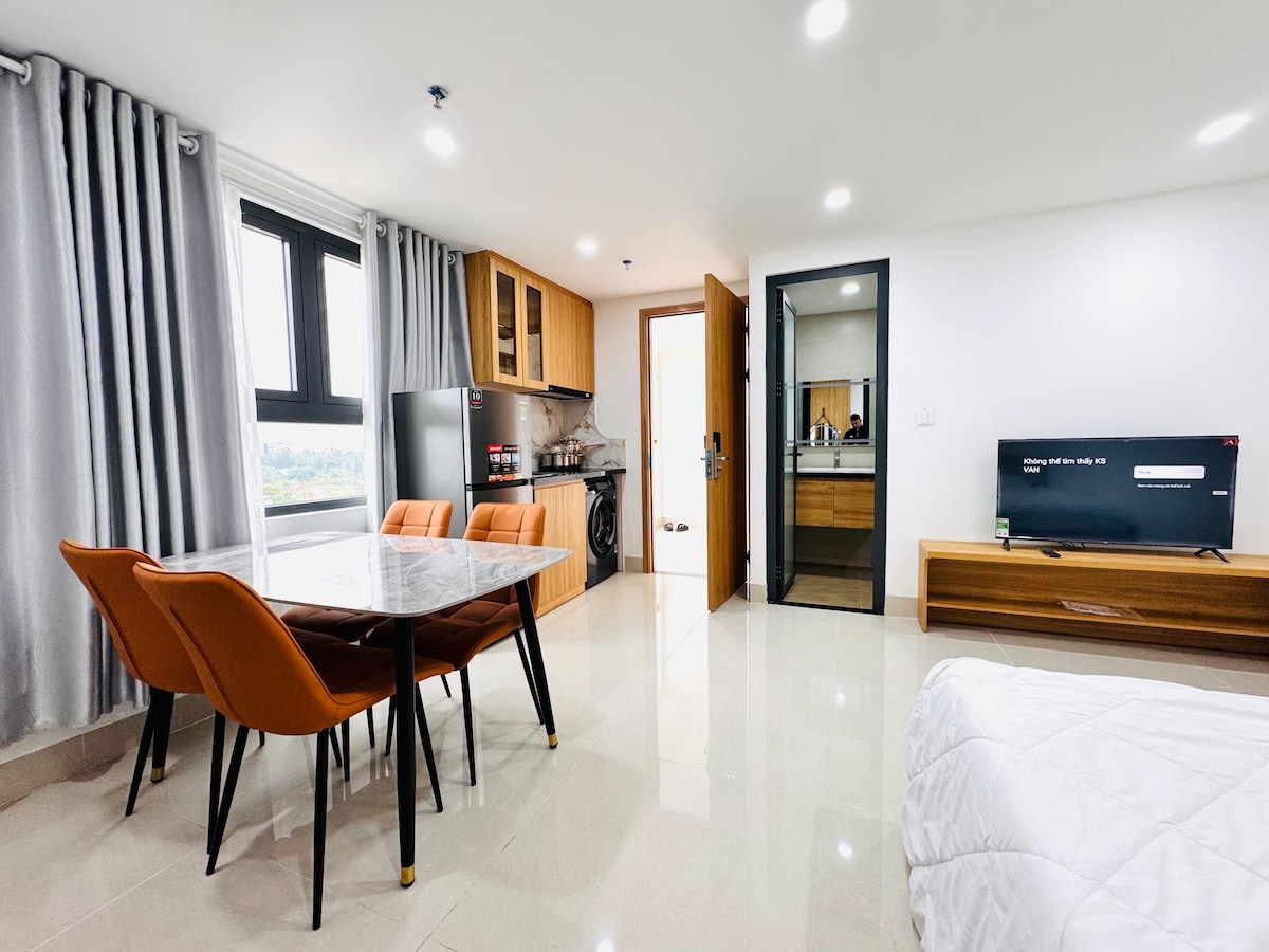 Căn hộ studio rộng rãi, hiện đại, nhiều ánh sáng tự nhiên với nội thất sang trọng, mang lại cảm giác thoải mái như ở nhà. Vị trí nằm giữa Đà Nẵng và Hội An, thuận tiện khám phá biển và phố cổ chỉ trong ít phút. Không gian ngoại ô yên bình đậm chất Việt Nam, dễ di chuyển, phù hợp cho kỳ nghỉ ngắn ngày hoặc lưu trú dài hạn.
