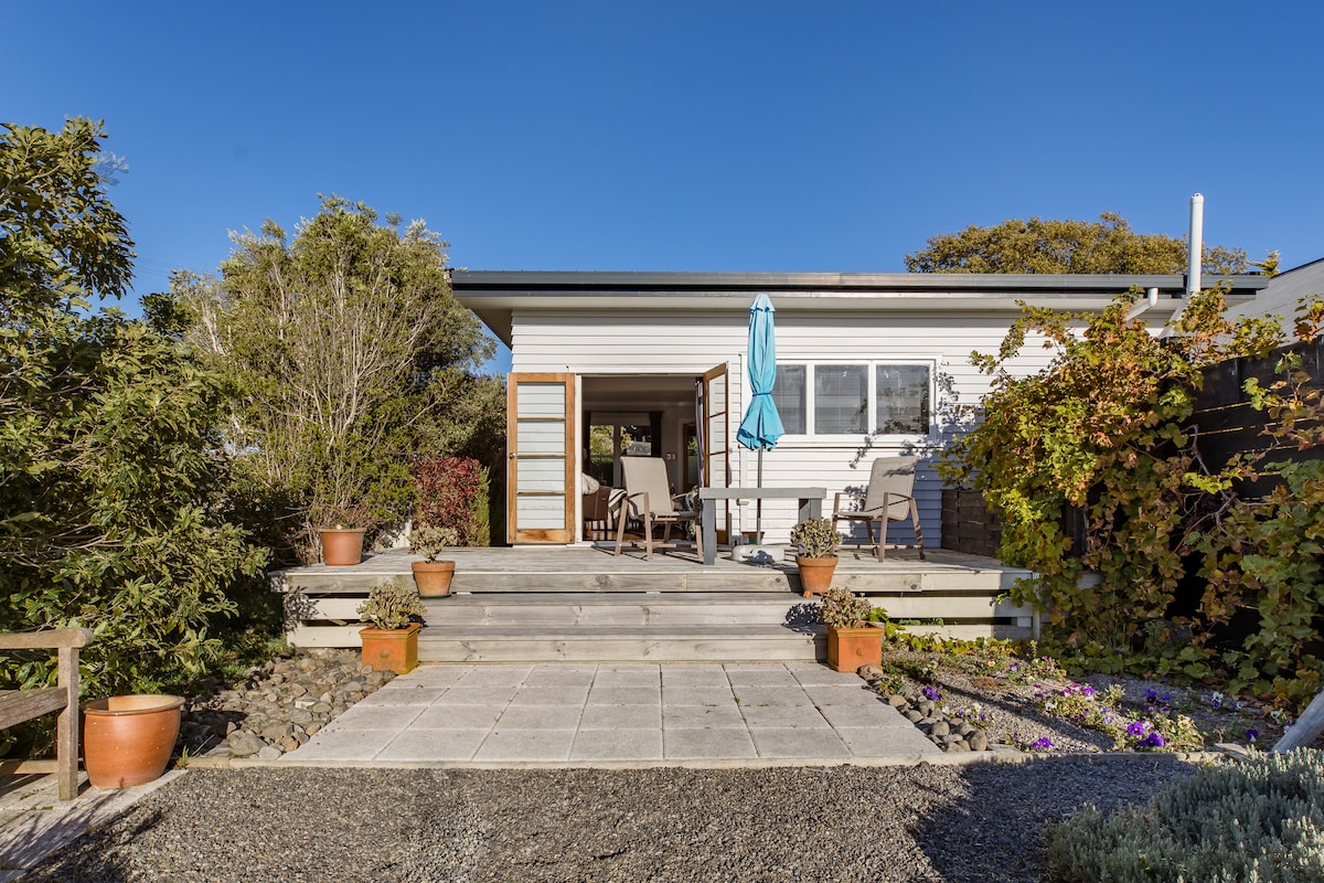 Svět daleko od světa - jen 5 minut od Greytownu. Nachází se na malé bio farmě v krásné zahradě. Super pohodlná postel, stylová výzdoba z poloviny století. Probuď se do ptačího zpěvu, pozorovat hvězdy z venkovní lázně a poslouchat volání kukačky ruru. Loll u bazénu nebo si půjč kola k prozkoumání. Snídaně s dobrou kávou, domácím müsli a ovocem, řemeslným chlebem a pomazánkami. Vejce od slepic z volného výběhu a slanina, které si můžeš uvařit za 25 USD na osobu. Jeď na parkovišti, tepelné čerpadlo, wifi a televizi.