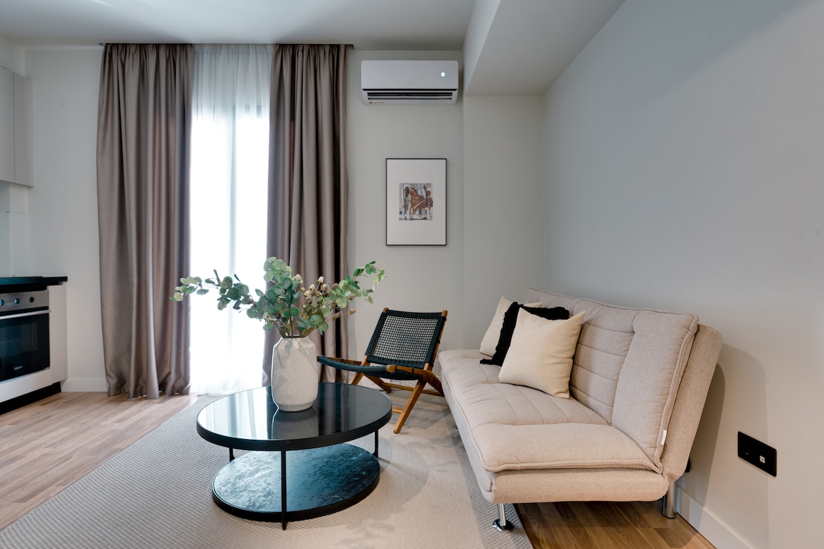 Moderní byt se 2 ložnicemi v Kypseli, se stylovým nábytkem a domácí atmosférou. Ideální pro páry, přátele nebo rodiny. Využívej společné vybavení: posilovnu, zasedací místnost, dvorek, střešní terasu s výhledem na Akropolis, vířivku, saunu a venkovní posezení. Nachází se v umělecké čtvrti plné kaváren, restaurací a barů. Nachází se v plně zrekonstruované budově Bauhaus z roku 2025. Jedinečný zážitek v Aténách!