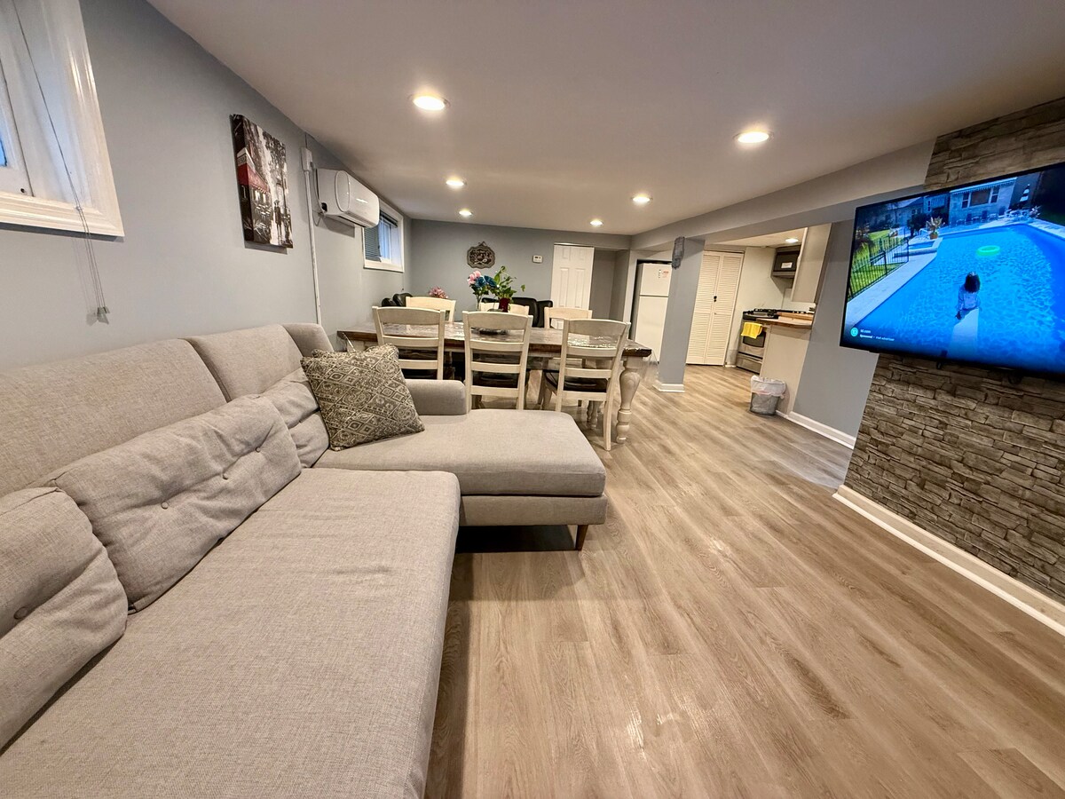 Welcome to our private one-bedroom apt/basement. MetLife Stadium 15 mins driving. New York, Times Square (bus stop is 7 minutes away walking distance.) Newark Airport-25 mins driving. American Dream Mall -15 mins. Met Life Stadium-15 mins. Soho Spa Club-6 mins. Our charming apartment is part of a two family house where we live in. There are great restaurants, markets, bakeries, cafes, etc. Our neighborhood is friendly, safe and secure.