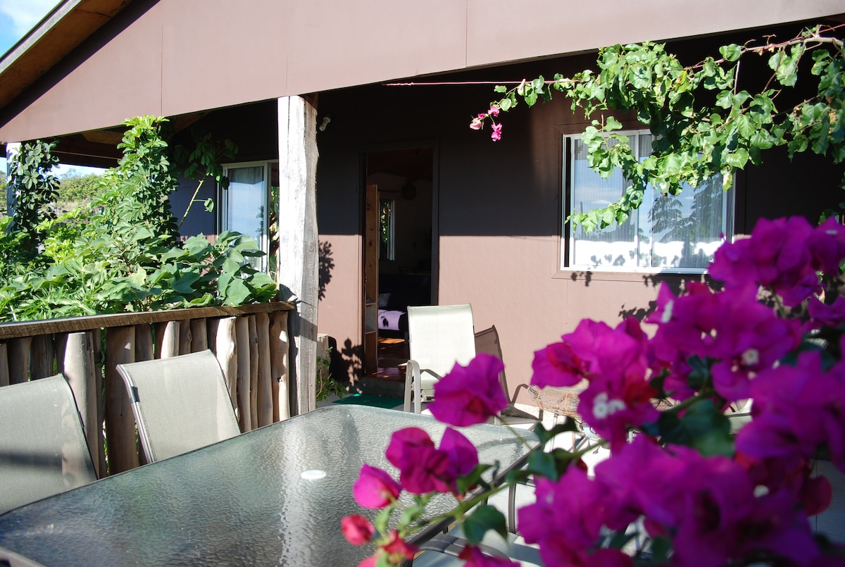 Loin des nuits bruyantes du village, louez votre maison dans un grand jardin calme, fleuri, aux vestiges archéologiques. Les cottages sont décorés de troncs sculptés, peintures et créations d'artistes locaux. Engagés pour un tourisme éco-responsable, Céline, écrivaine, conteuse française et Juan, agriculteur bio rapanui vous accueillent pour personnaliser votre séjour et le rendre unique. Location de voiture à prix préférentiel, tours, conseils. Idéal pour les enfants, le yoga et déconnecter.