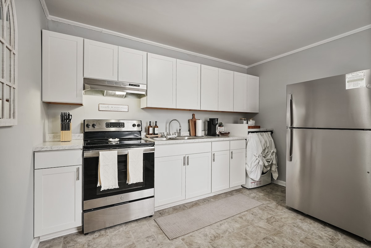 Tento soukromý apartmá ve Fayetteville je ideální pro rodinné návštěvy nebo malé skupiny a pohodlně se v něm ubytují až tři hosté. Vychutnej si 65palcovou televizi v obývacím pokoji a 55palcovou televizi v ložnici, obě s Netflixem, Disney+, Premier a Jellyfin. V ložnici je manželská postel pro dva dospělé a dítě, zatímco v obývacím pokoji je rozkládací pohovka pro jednoho dospělého nebo dvě děti. Díky plně vybavené kuchyni, pracovnímu prostoru, koupelně, prádelně a uzavřenému dvorku je ideální pro jakýkoliv pobyt.