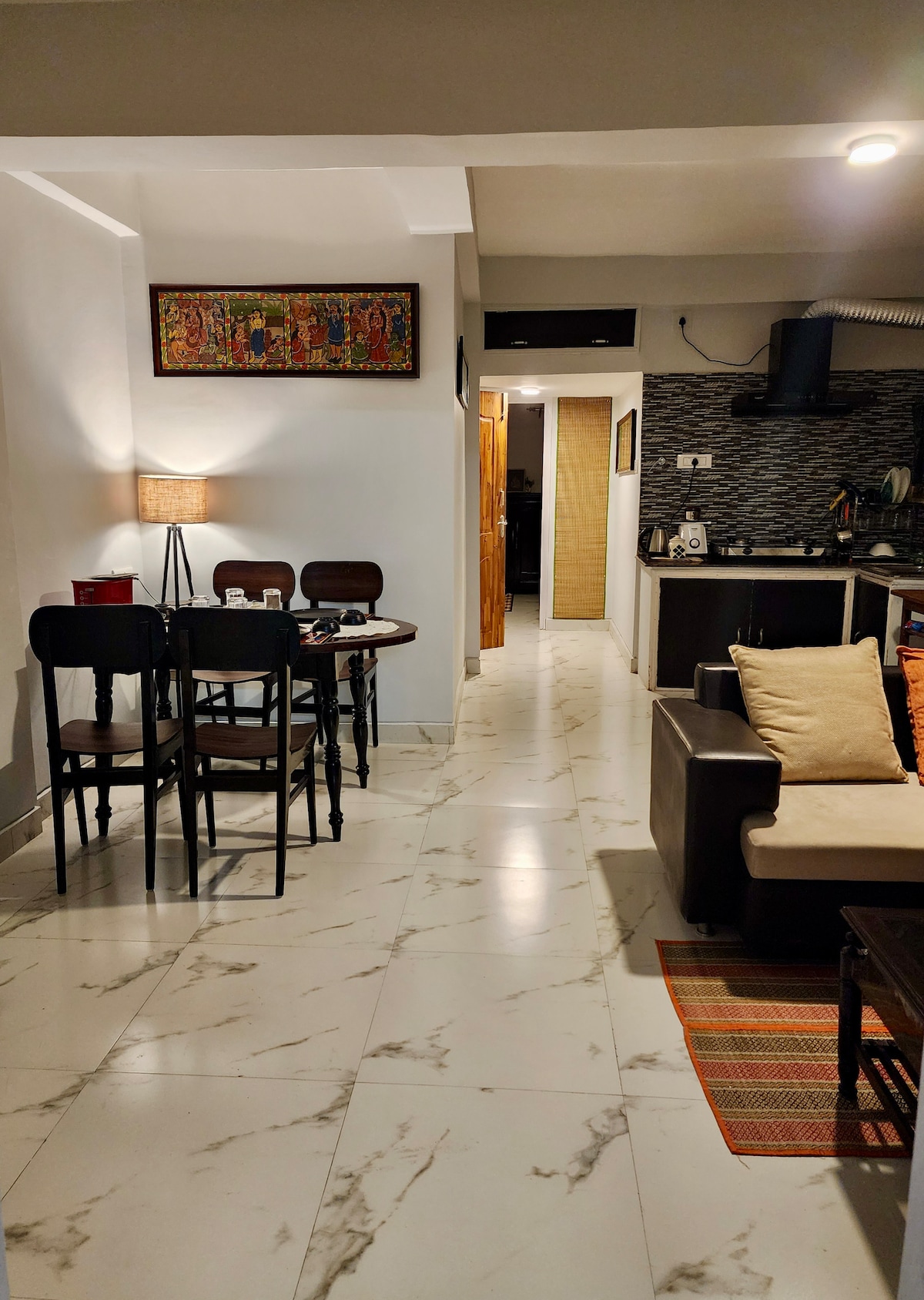 Tento elegantní apartmán s 1 ložnicí je ideální pro malé rodiny, manželské páry nebo dokonce pro sólo cestovatele. Díky vysokorychlostnímu připojení k internetu je ideální i pro ty, kteří pracují z domova. Prvotřídní poloha: 4 km od mezinárodního letiště Kalkata, 1 km od ekoparku, 2 km od centra města II a pouhých 15 minut od sektoru V. Poznámka: V současné době nehostíme nesezdané páry. Omlouváme se za nepříjemnosti.