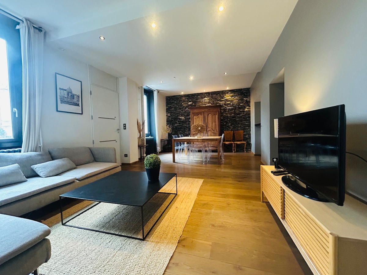 Skutečný kokon o ploše 60 m² pro 4 osoby s lázněmi a vlastní vnitřní saunou. Centrální poloha, 7 minut od vlakového nádraží/10 minut pěšky od centra, tento jednopatrový dům je plný kouzla s odkrytými břidlicemi, veškerým komfortem, klasifikovaný jako 4hvězdičkový zařízení pro cestovní ruch, klidný, se soukromou terasou, která není přehlížena. Ubytování navržené architektem má velký obývací/jídelní pokoj, plně vybavenou kuchyň s výhledem na terasu, ložnici a spací prostor s palandami