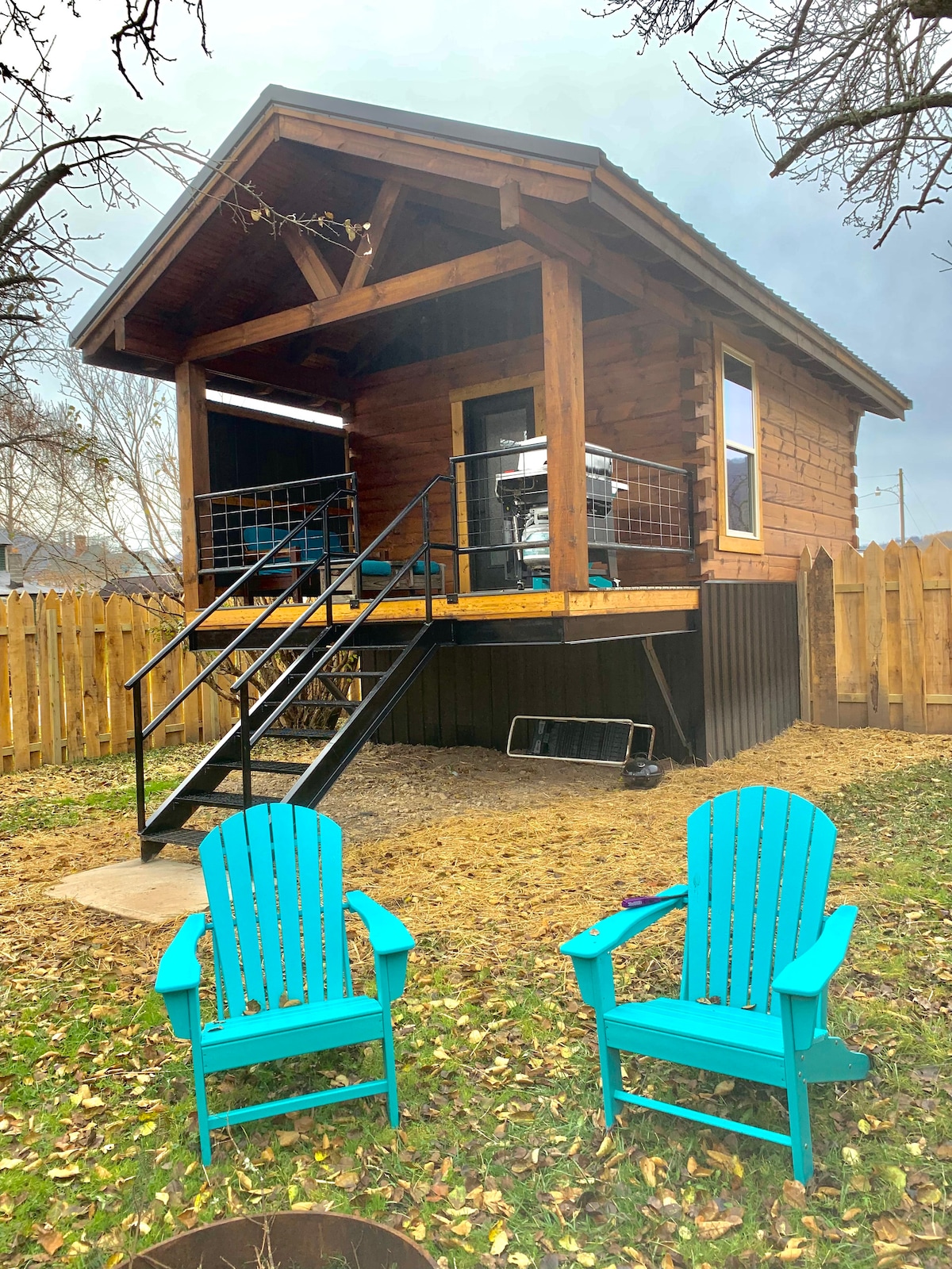 New cabin built 2019 in the heart of pocahontas county! Just a 28 mile drive to Snowshoe ski resort. It has a bedroom downstairs with a queen bed, upstairs bedroom has a full bed with open loft overlooking kitchen and living room area, bathroom downstairs with standup shower. It has a heat pump, two TVs & WIFI also a fully equipped kitchen. We have a fire pit outside and a charcoal grill. The 77 mile greenbrier river trail is directly in front of our cabin.