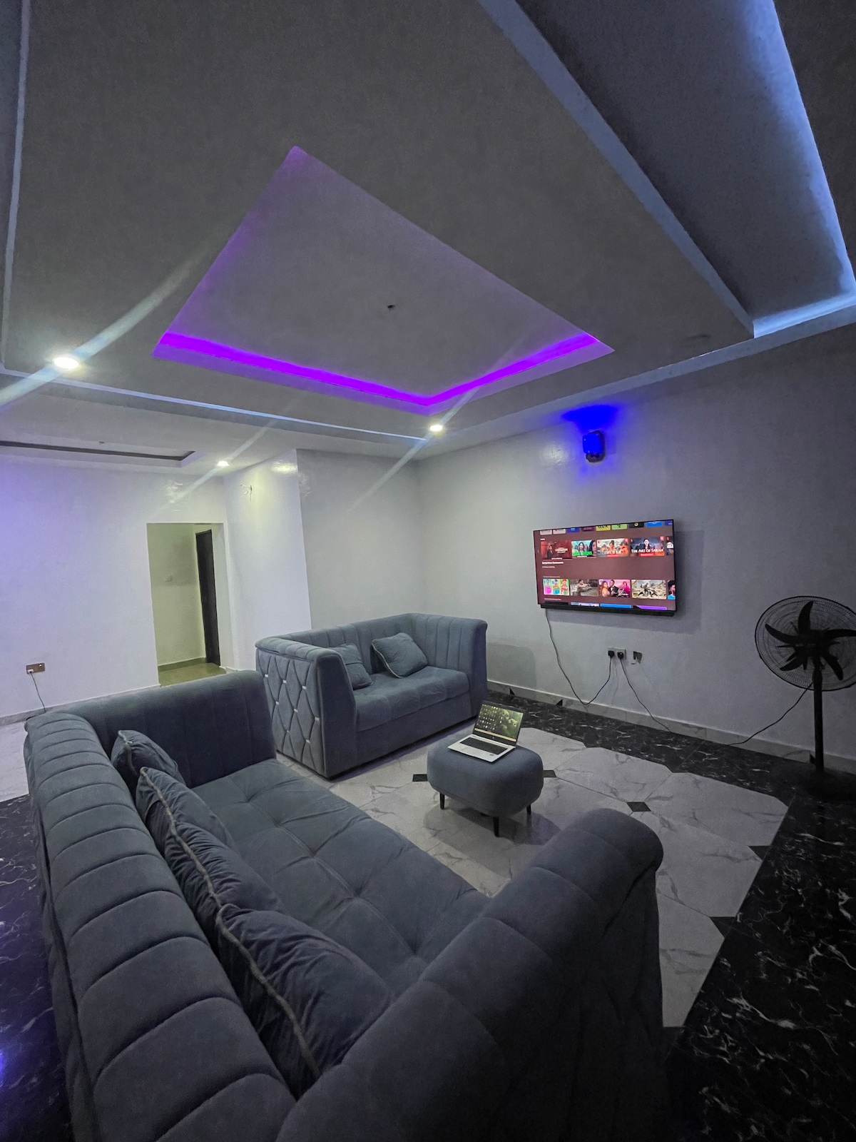Welcome to our spacious 3-bedroom apartment, conveniently located near the airport in a serene, quiet, and secure neighborhood. Ideal for families, groups, and business travelers, the apartment offers 3 ensuite bedrooms for added privacy and comfort. Enjoy a fully equipped kitchen, generous living spaces, and reliable backup power supply for a smooth stay. Perfect for guests seeking comfort, convenience, security, and easy airport access in a calm setting.