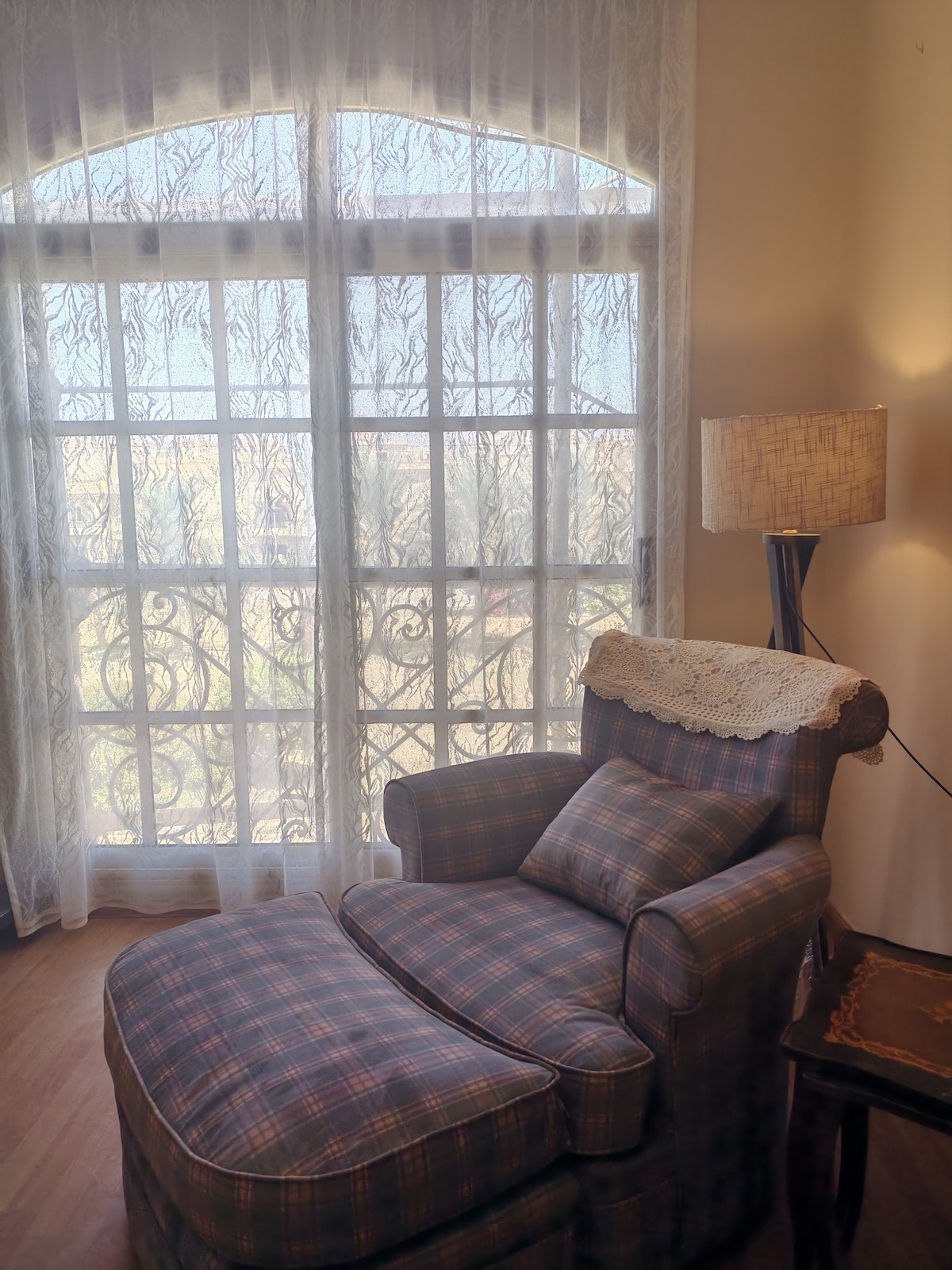 Enjoy a stylish experience at this centrally-located place. we do provide free luggage 🧳 assistance. 3 mins driving to Al Rehab & 1 min walking to Garden 8 Compound International Restaurants, Supermarket, Bars, Pharmacies are 1 min walking distance. Privacy is Guaranteed with Self Check in We're thrilled to welcome you to our unit on the 4th floor of our charming building. While there's no elevator, rest assured, our dedicated representative will be on hand to assist with your luggage.