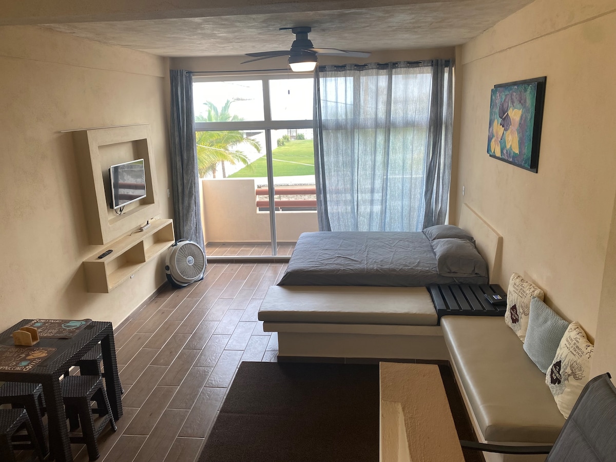 Prostorný byt na pobřeží oceánu v Pie de la Cuesta, poblíž Acapulca. Terasa s nádherným výhledem na moře a přímým přístupem na pláž. Bazén s dětským koutkem, WiFi, vybavená kuchyně, TV, stůl a klimatizace v celém prostoru. Ideální pro služební nebo rodinné výlety. Vhodné pro domácí mazlíčky (nejprve se zeptejte). 24/7 ostraha, parkování, obchody a restaurace v okolí. Poloprázdná pláž. Pouze 4,5 hodiny od Mexico City přes novou obchvatovou silnici