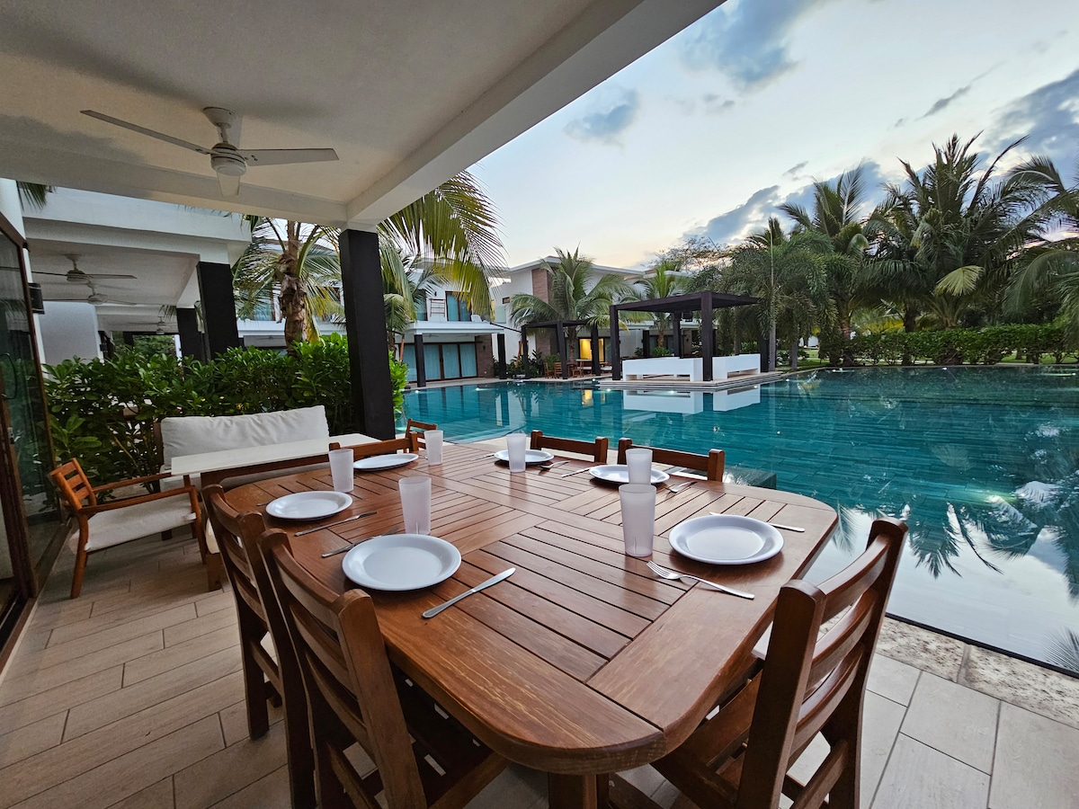 Linda Villa en alquiler. Se encuentra en el primer nivel y cuenta con piscina privada, es de fácil acceso para personas mayores e ideal para familias. El complejo cuenta con una de las piscinas con río más grandes del país. En la villa caben 6 personas cómodamente, sin embargo, de ser necesario hay 3 camas adicionales imperiales abajo de todas las camas.