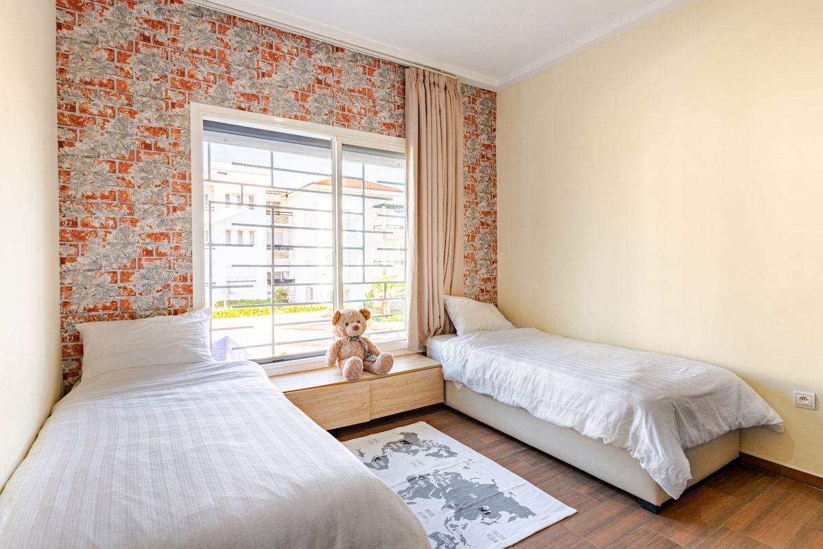 Vítejte v našem krásném bytě! Nachází se jen 20 minut chůze od krásné pláže, a pokud preferujete auto, je to pouhých 5 minut jízdy. Pro ty, kteří mají zájem o objevování, je vlakové nádraží pohodlně vzdálené 5 minut procházky, což usnadňuje dosažení požadovaných destinací. Oceníte také skutečnost, že Rabat je vzdálen pouhých 20 minut jízdy autem. Mnoho lidí sem přijíždí a říká, že se jim to opravdu líbí. (Bazén je otevřen každý den kromě pondělí)