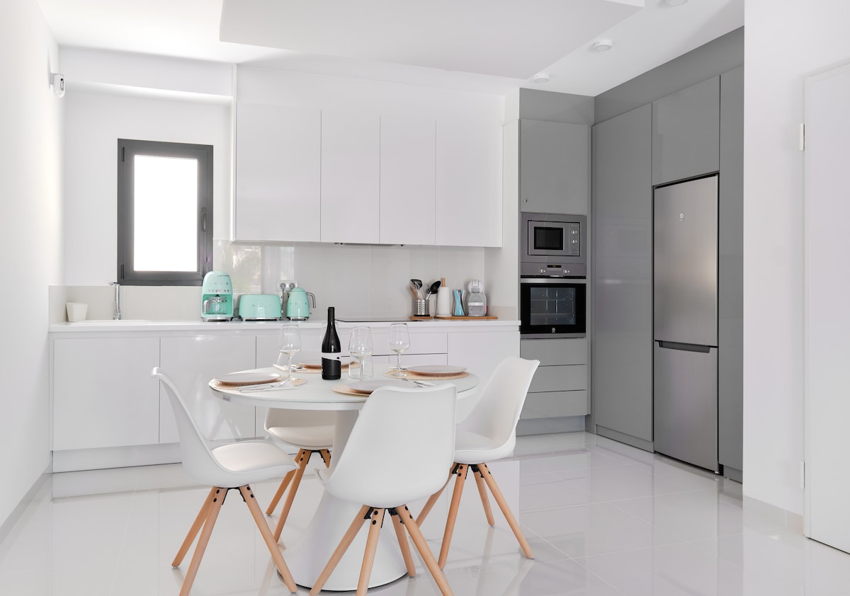 Stylový moderní apartmán v rodinném komplexu Higuericas Costa v Pilar de la Horadada, jen 200 metrů od pláže. Ideální pro rodiny nebo páry, světlá rezidence má dvě ložnice a dvě koupelny. Otevřená kuchyně plynule přechází do útulného salonku. Užij si terasu nebo si odpočiň na prostorném soláriu na střeše, které je vybaveno pergolou pro stín a nabízí klidný venkovní prostor k odpočinku. Ideální pro klidný pobyt, v blízkosti pláže, restaurací a obchodů.