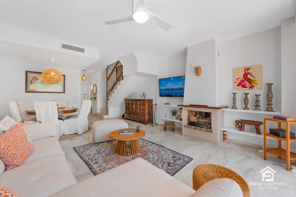 Vítejte v našem elegantním řadovém domě se 3 ložnicemi v urbanizaci Saladillo-Benamara v Belen Beach. Tento světlý klenot nabízí 3 soukromé terasy, koupelny v každé ložnici, plně vybavenou kuchyň, klimatizaci, Wi-Fi, nově zrekonstruovaný bazén (červen 2025) a podzemní garáž. Jen pár kroků od pláže, je to perfektní kombinace pohodového pobřežního luxusu a pohodlí – jen pár minut od Estepony a Puerto Banús.