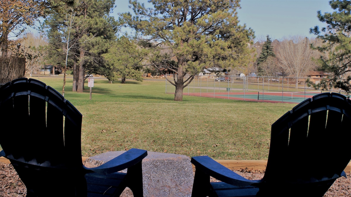 Malé moderní ranč v Garden of the Gods je stvořen pro dokonalou dovolenou! Tento dům má přístup ze dvorku do 6akrového parku vhodného pro rodiny, který má nádherný, nerušený výhled na Pikes Peak! Je to dokonalý domov pro zábavu, včetně prostorné kuchyně s otevřeným obytným plánem a veškerým moderním pohodlím. Pouze sedm minut chůze od historického ranče Rockledge a zahrady bohů a jen pět minut jízdy od Old Colorado City a Manitou Springs! (POVOLENÍ 0390)