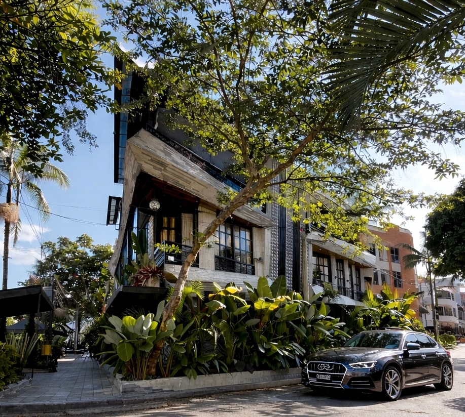 Medellin only Boutique -Mall Villa.9 Designer suites with bathroom rooftop jacuzzi ,chef's kitchen ,fire pit lounge and private nightlife all in one brutalist architectural masterpiece.Daily housekeeping 24/7 security and concierge.Located in central Belen just minutes from Poblado and laureles . Designed by award-winning architects and executed by Colombian master artisans, Cemntus blends brutalist architecture with refined local craft.